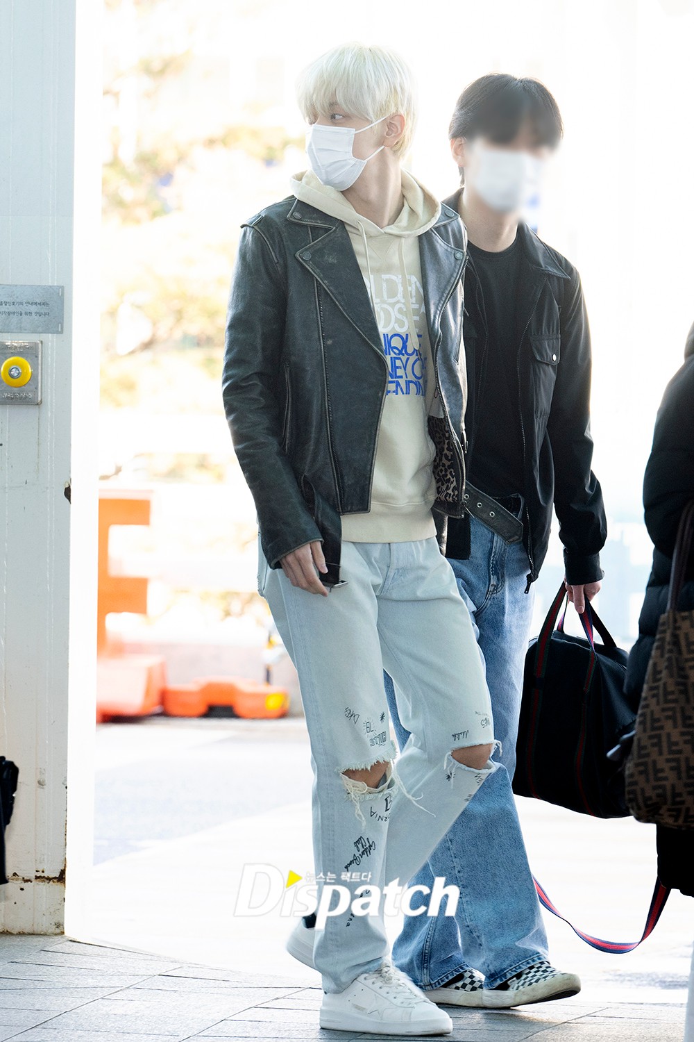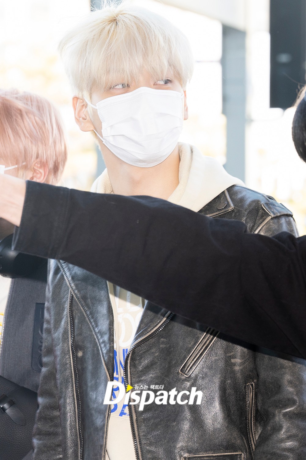 수빈은 가죽 재킷에 청바지로 훈훈한 공항패션을 선보였다.