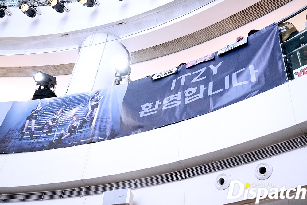 있지의 화려한 공연 전야 기념 현장인데요. 멤버들은 콘서트 전날 현지 대형 몰 윈저 하우스(Windsor House)에서 홍콩 믿지를 만났는데요.