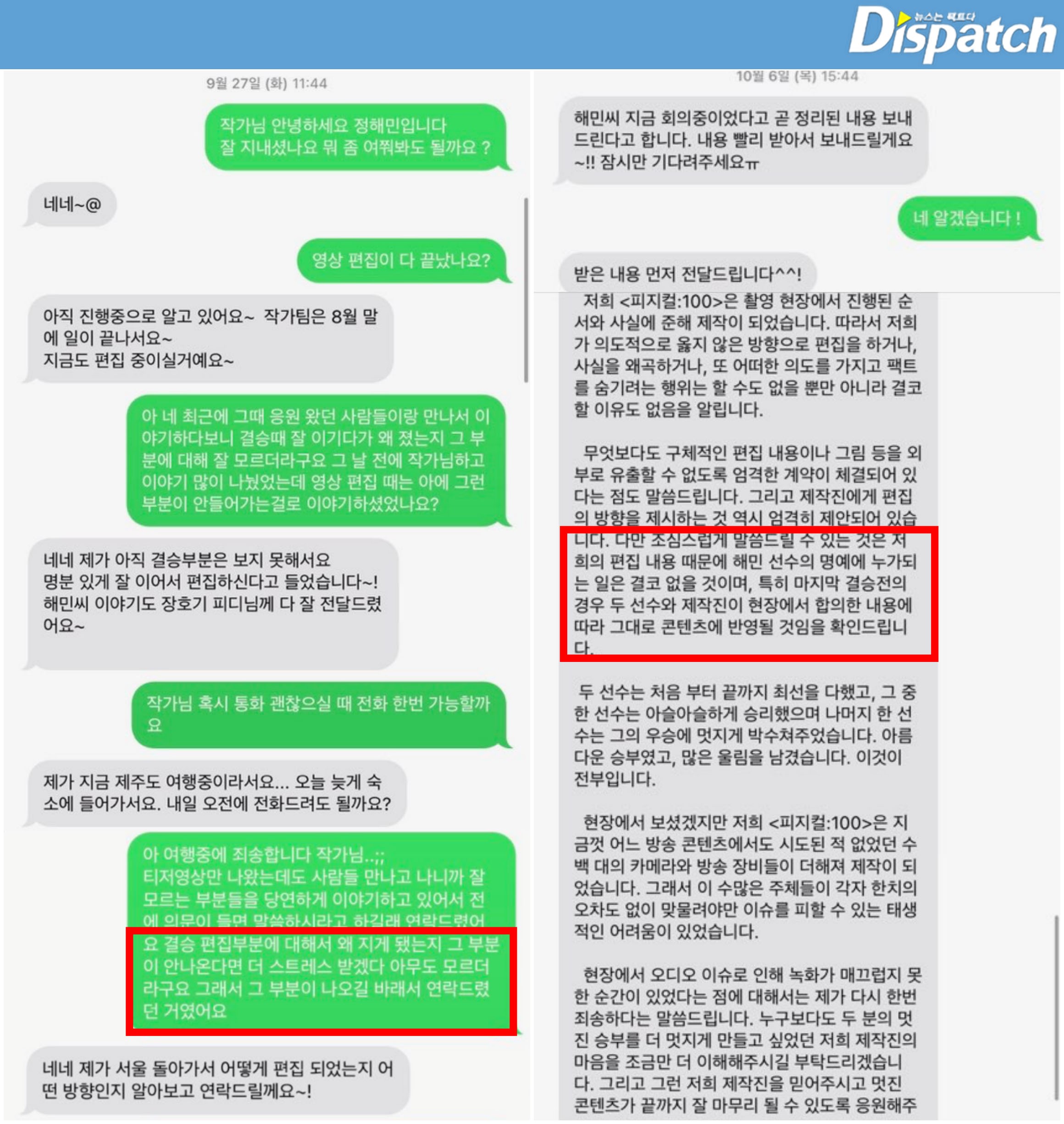 그도 그럴 게, '피지컬: 100'은 리얼리티 서바이벌이다. 정해민은 자신이 무너진 요인에 대한 리얼한 고지를 바랐다. 실제로, 제작진에게 문자를 보내기도 했다.