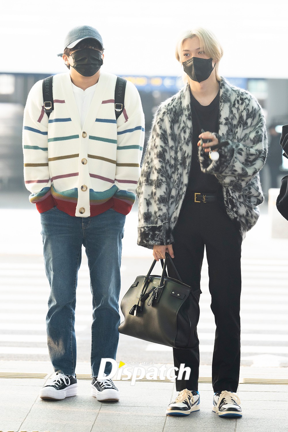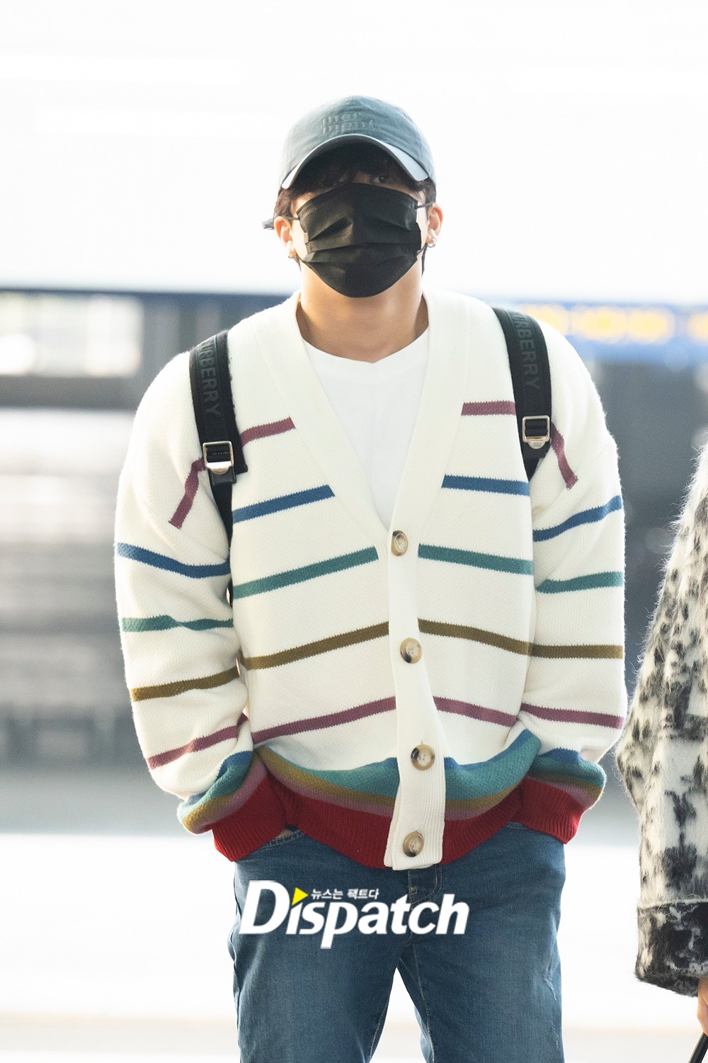 창빈은 화이트 니트 재킷에 청바지로 훈훈한 공항패션을 완성했다.