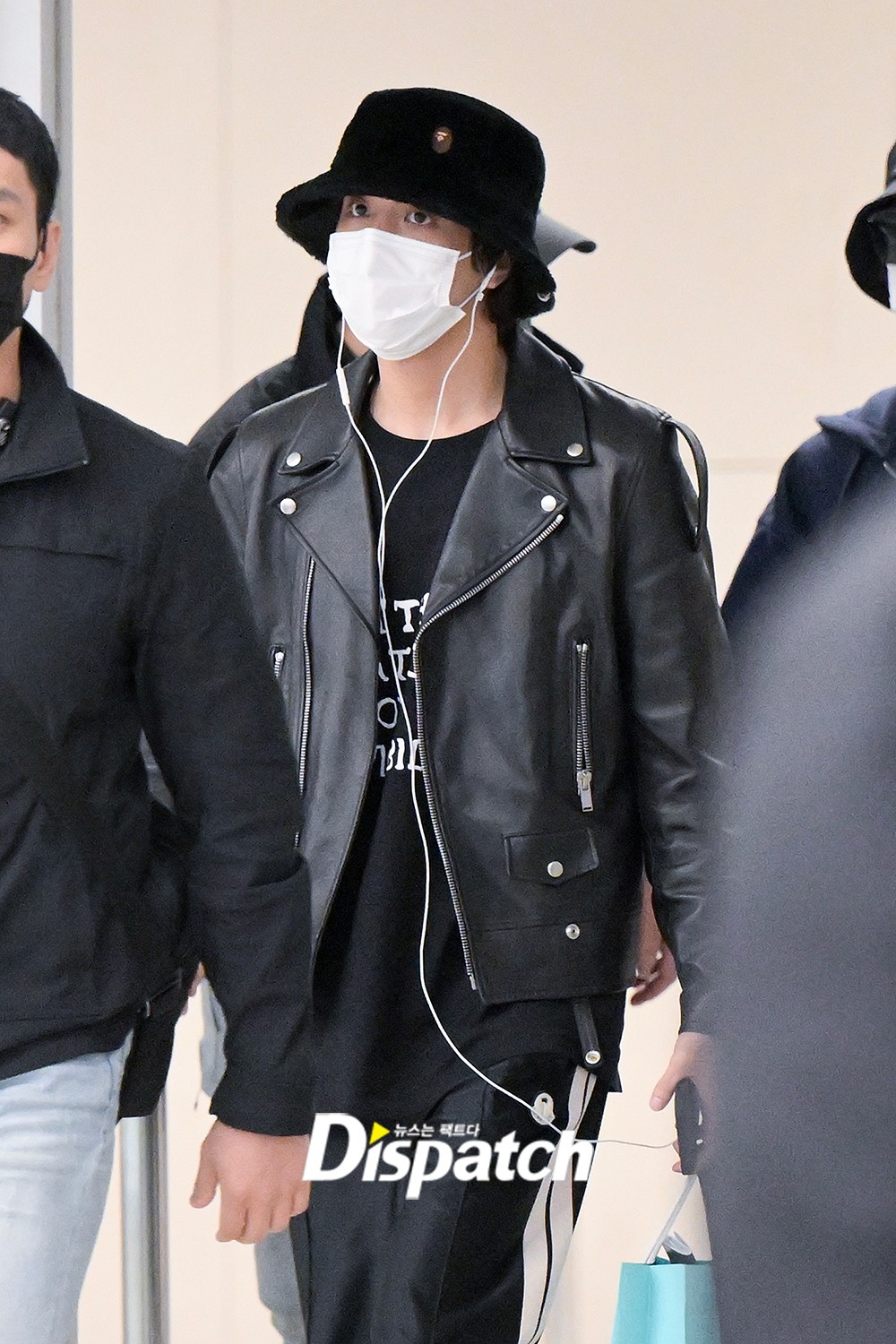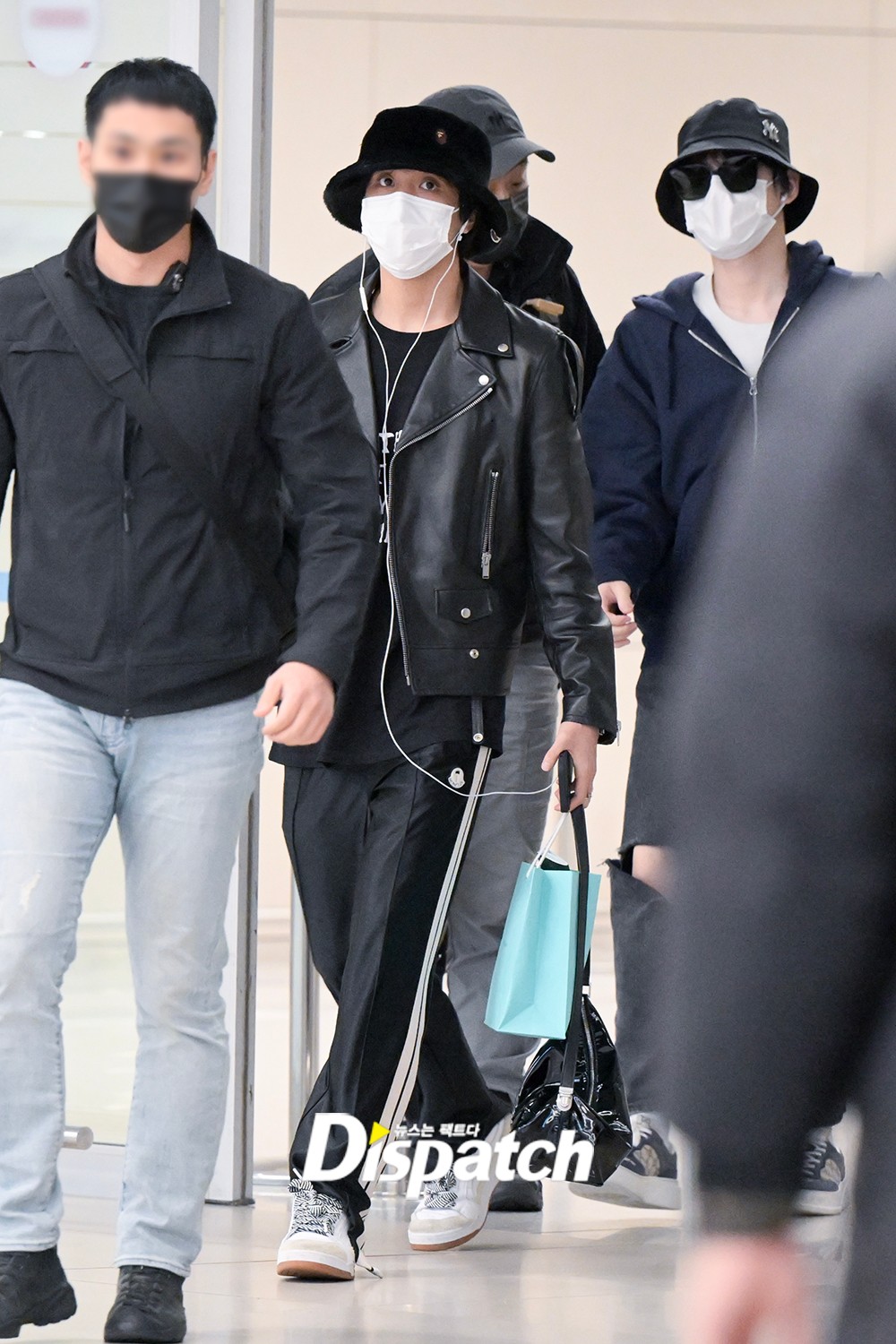 해찬은 이날 블랙으로 매치시킨 시크한 공항패션으로 눈길을 끌었다. 가죽 재킷으로 카리스마 넘치는 분위기를 자랑했다.