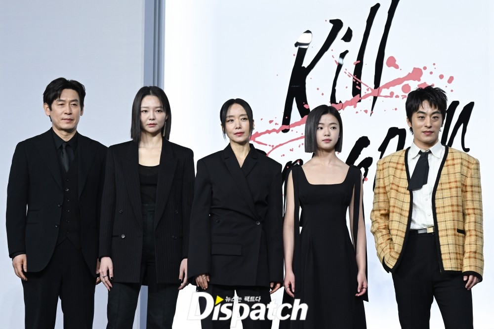 '길복순' 제작보고회가 21일 서울 그랜드 인터컨티넨탈 파르나스에서 열렸다. 이날 전도연을 비롯해, 설경구, 김시아, 이솜, 구교환, 변성현 감독 등이 자리했다.