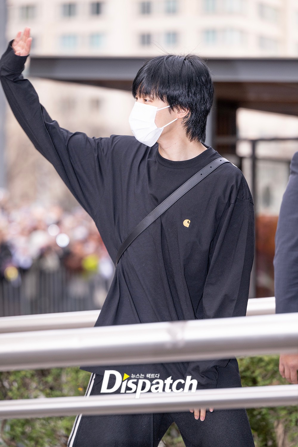지민은 이날 자신을 기다려준 팬들에게 허리를 굽혀 인사하며 고마운 마음을 전했다.