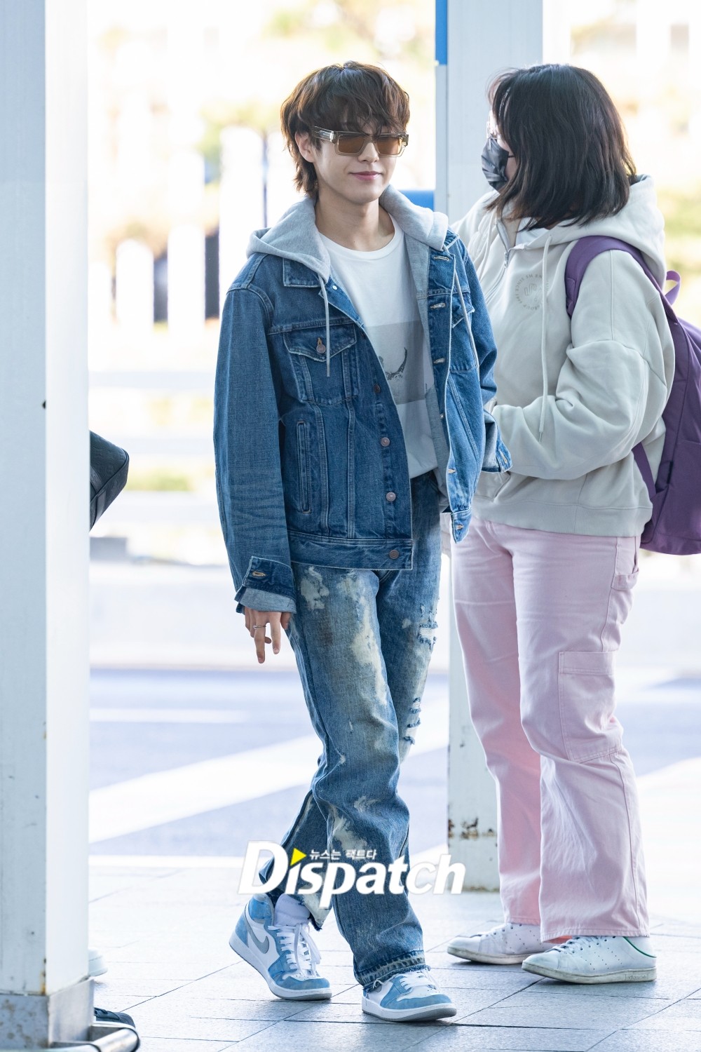 런쥔은 청청패션으로 멋을 냈다. 여유로운 손인사와 미소로 팬들에게 인사를 건넸다.