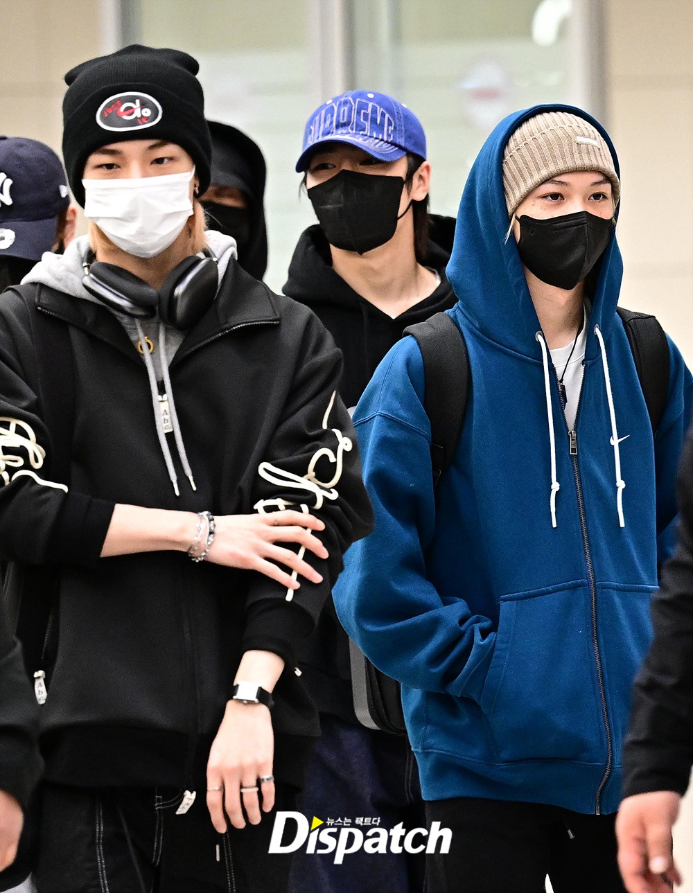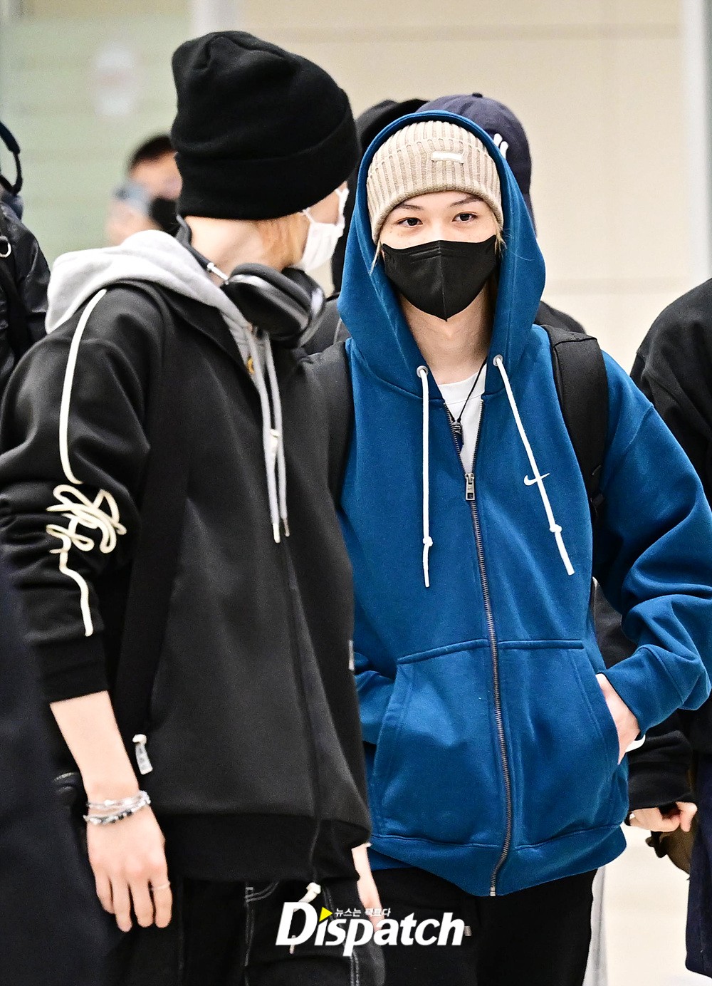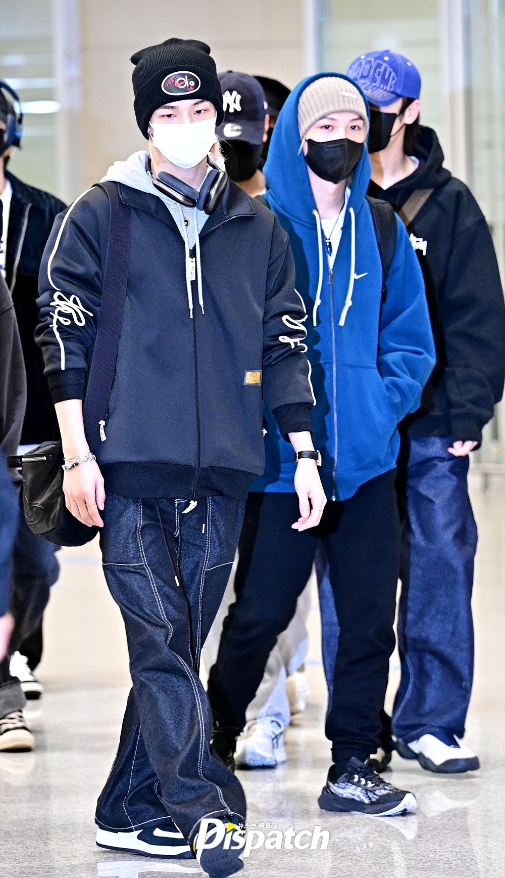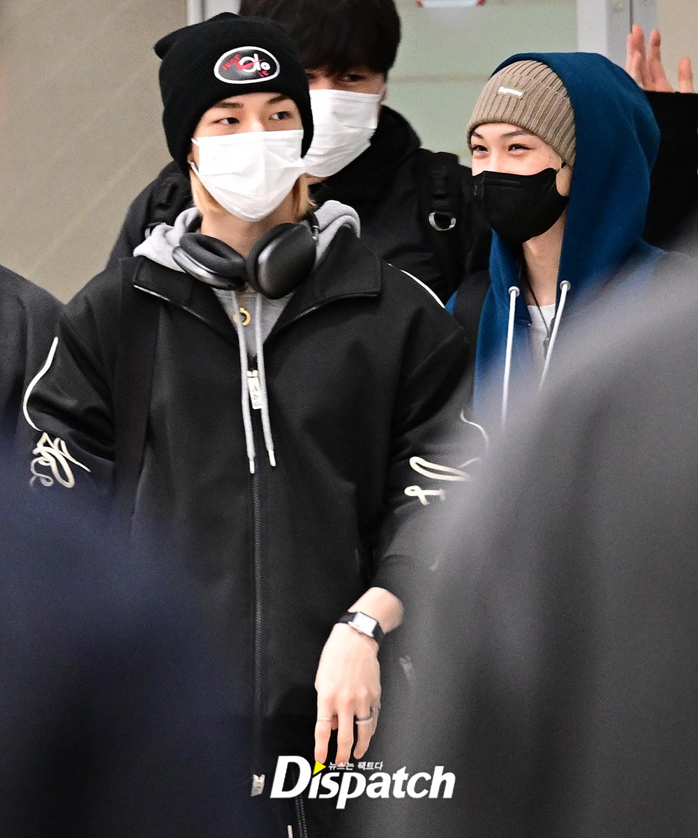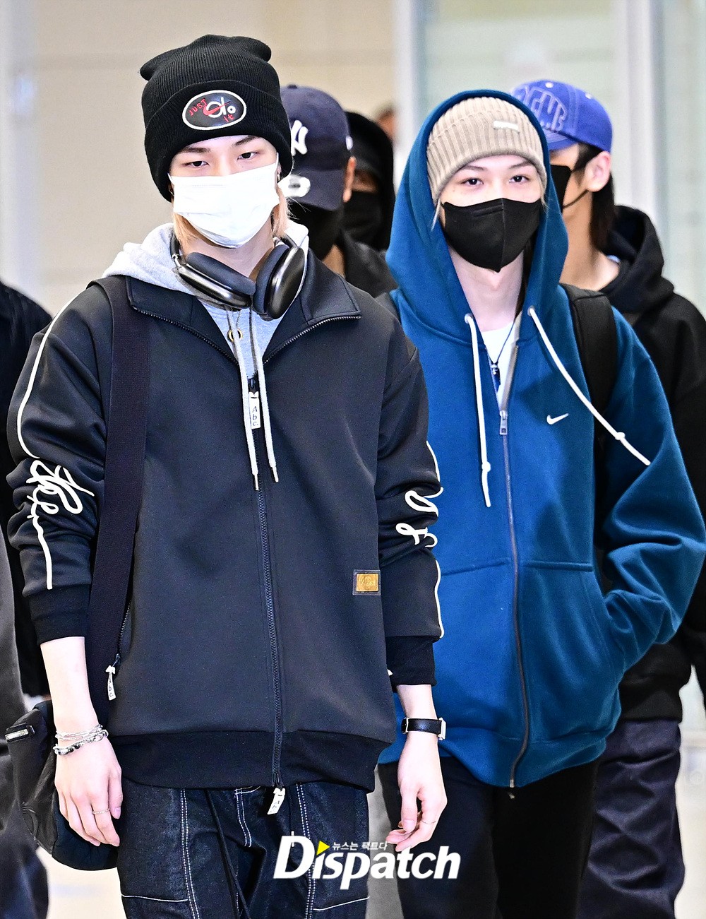 현진과 필릭스는 후드집업과 비니를 매치한 채 입국장을 나섰다. 마스크에도 훈훈한 비주얼이 돋보였다.