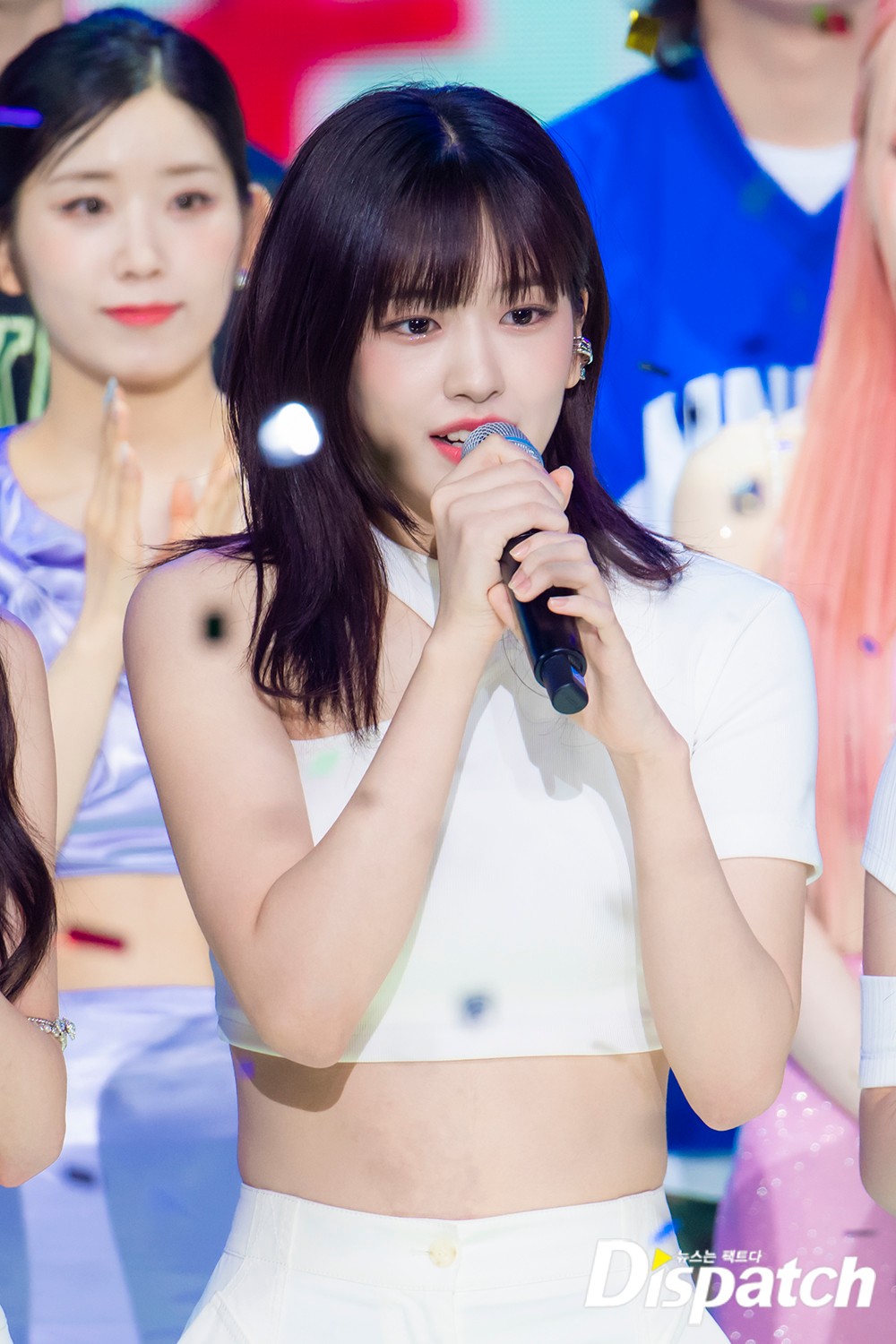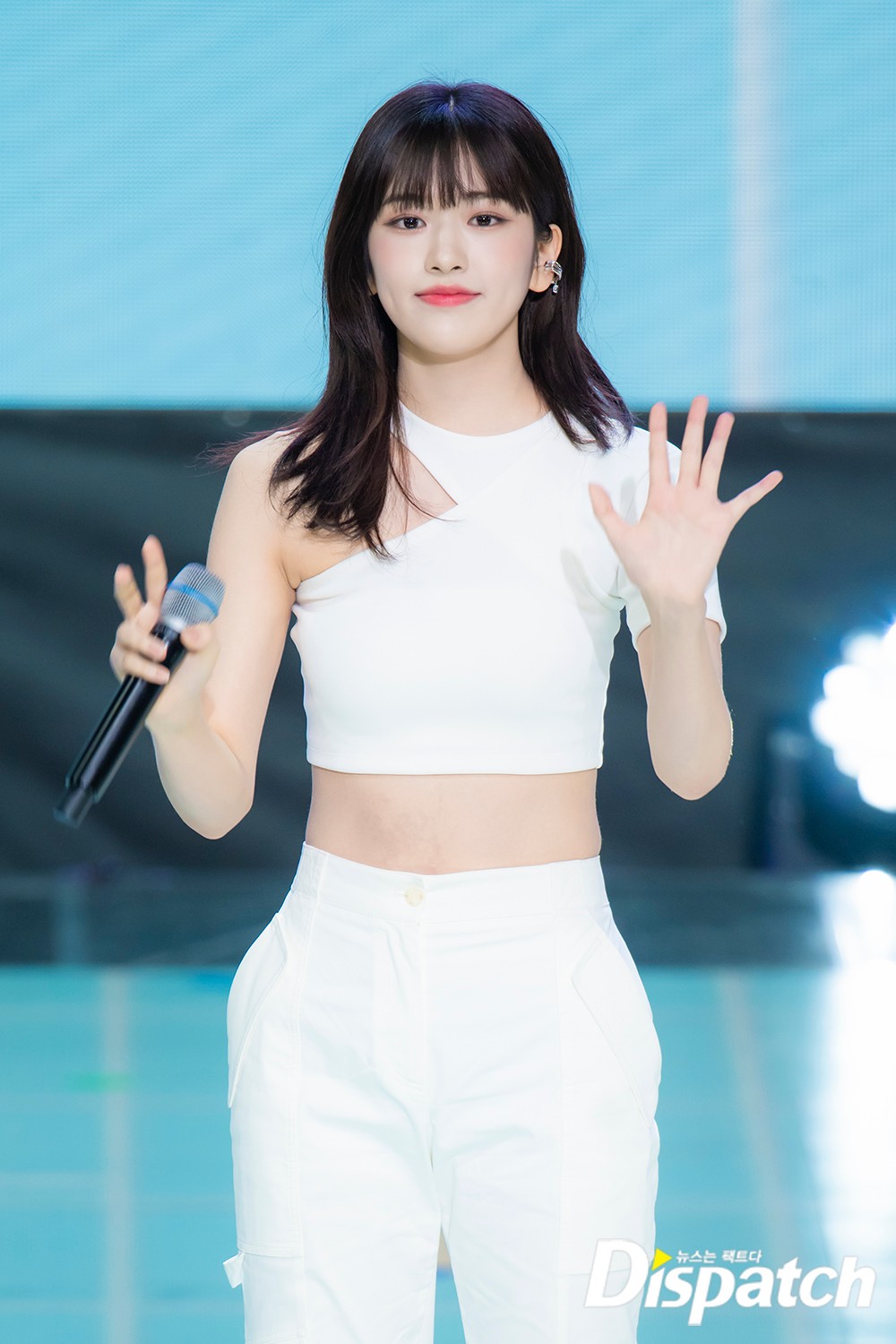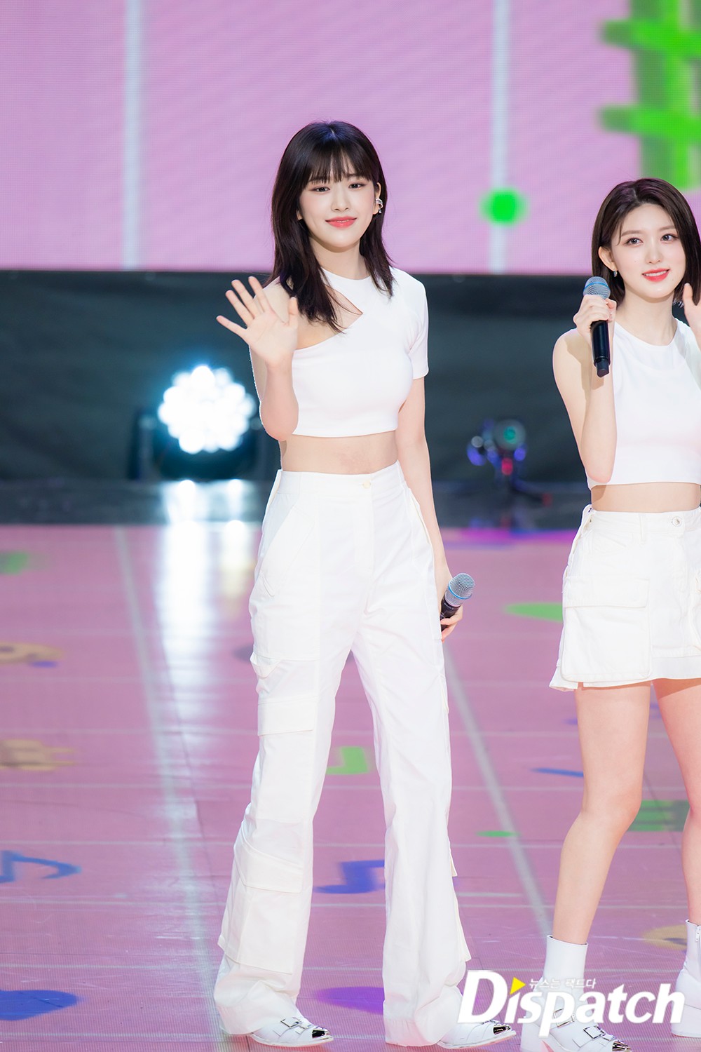 그룹 '아이브'의 안유진은 화이트 크롭티와 팬츠로 청순한 분위기를 뽐냈다.