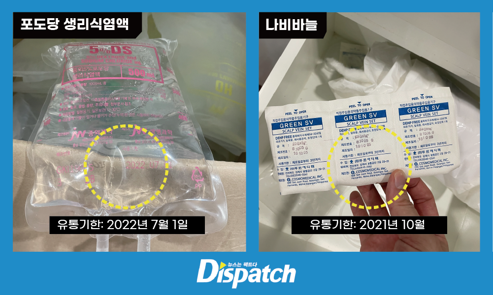 서세원은 어떤 종류의 링거를 맞았을까. ‘디스패치’가 확인한 수액(포도당)의 유통기한은 2022년 7월 1일. 박스째 실온에 방치돼 있었다.