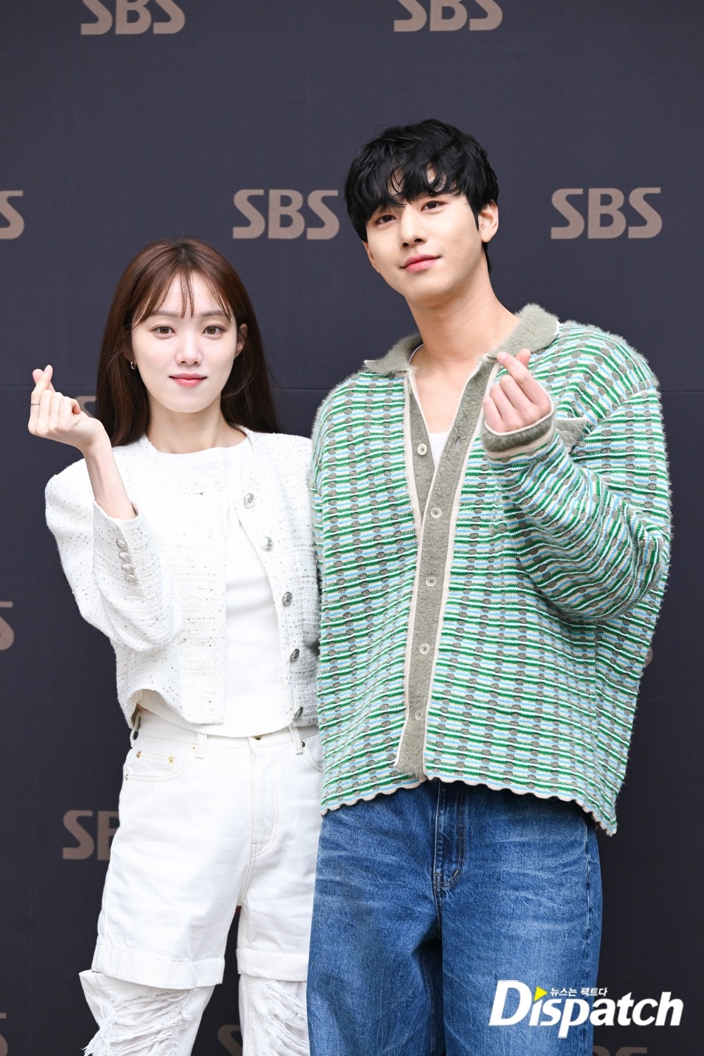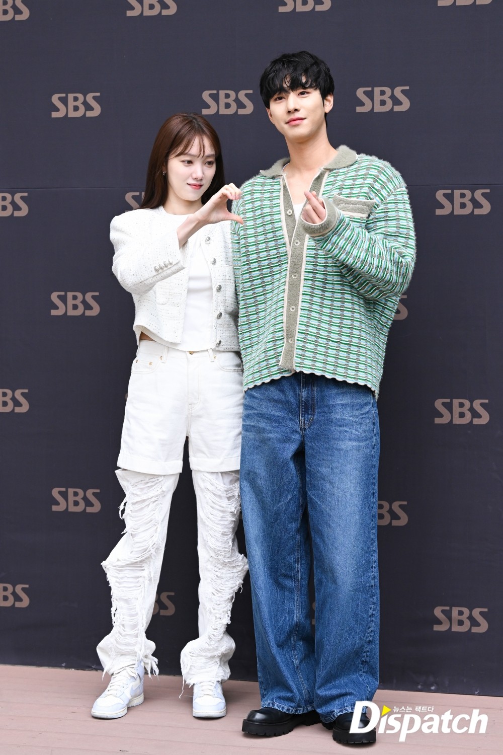 이성경과 안효섭의 엇갈리 포즈가 시선을 사로잡았다. 취재진의 하트 포즈 요청에 서로 다른 손하트로 웃음을 남겼다.
