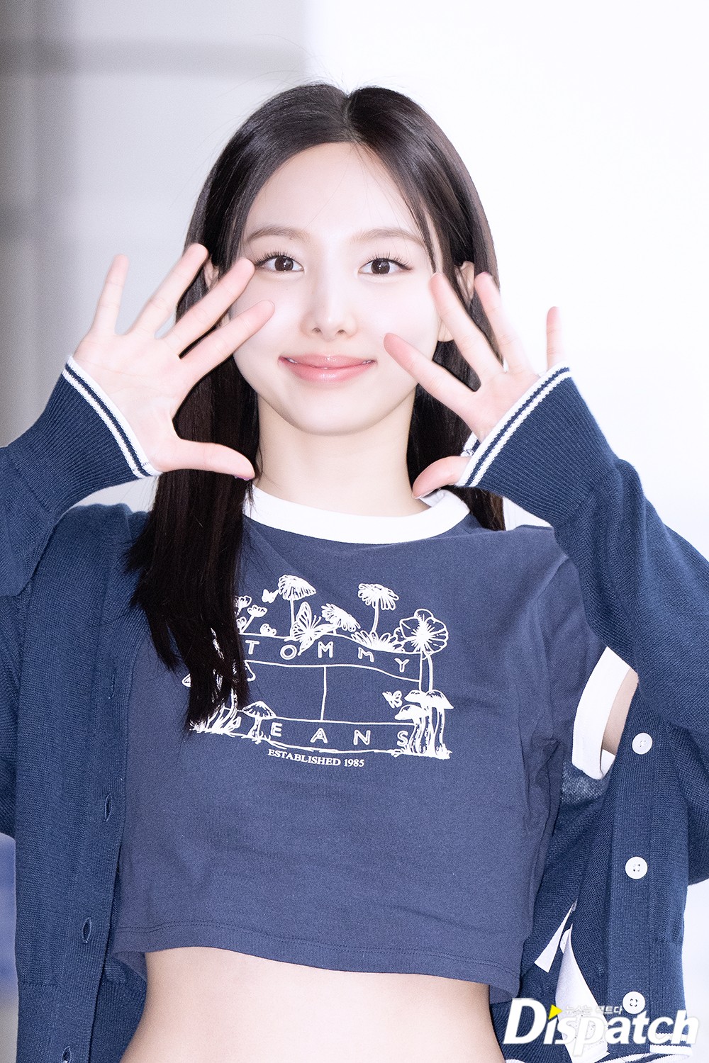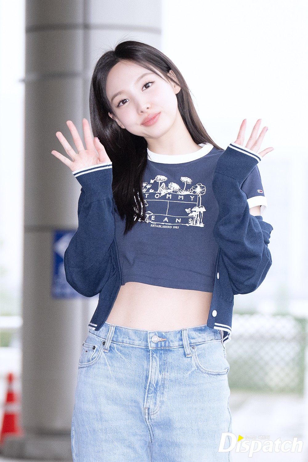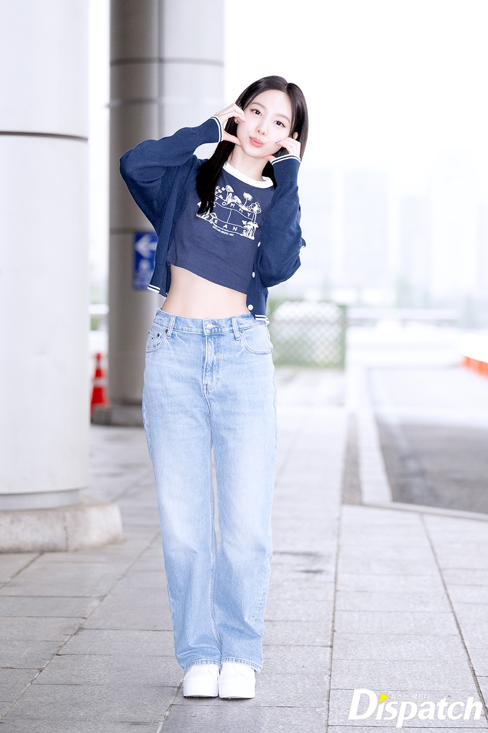 나연은 이날 청바지에 크롭 티셔츠를 매치해 러블리한 공항패션을 연출했다. 깜찍한 미모가 돋보였다.