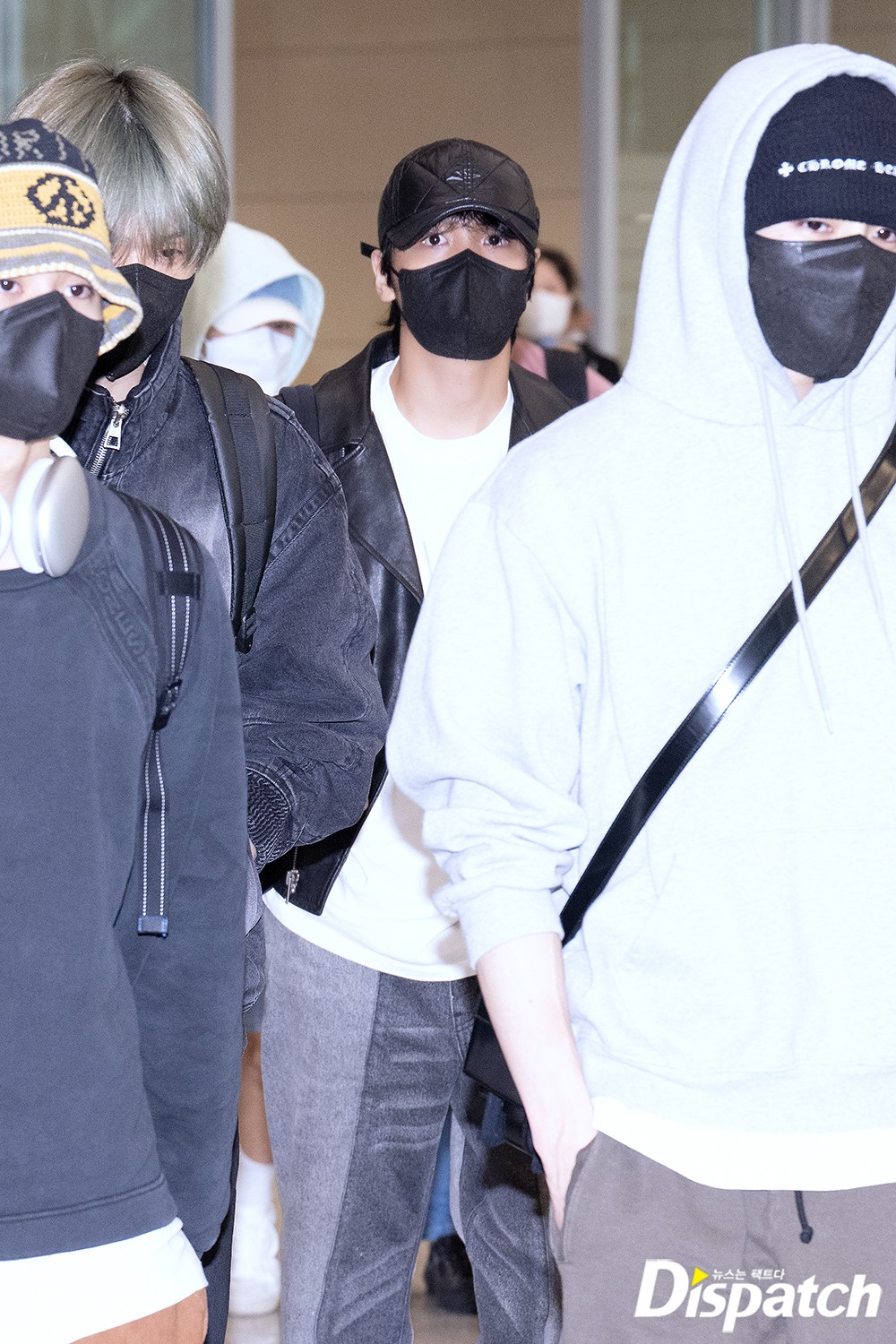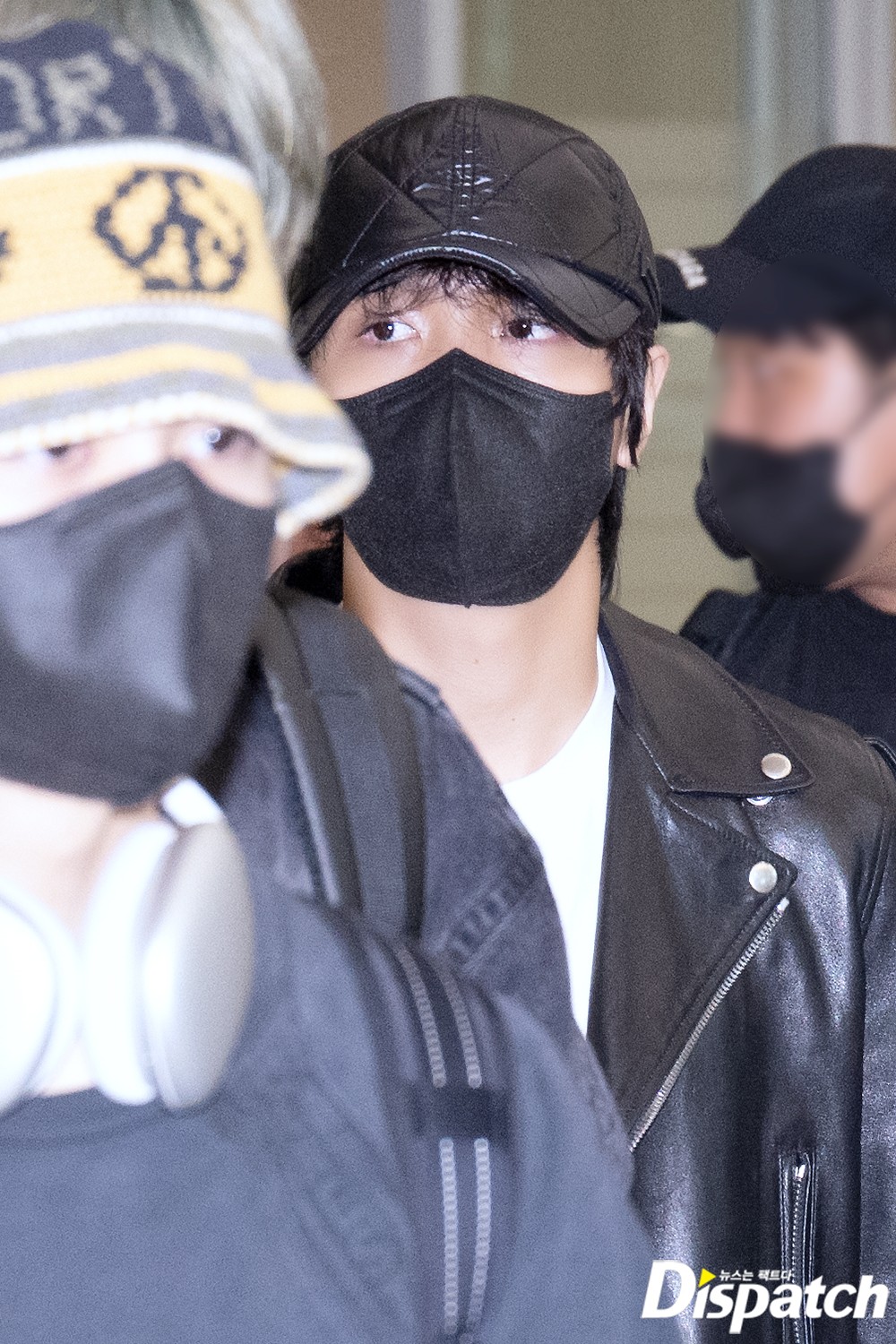 해찬은 이날 청바지에 가죽 재킷으로 시크한 공항패션을 연출했다. 마스크와 모자로 얼굴을 가렸지만 훈훈한 비주얼이 돋보였다.