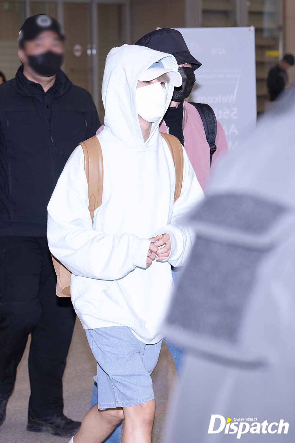런쥔은 이날 반바지에 민트 후드 티셔츠를 매치해 댄디한 공항패션을 연출했다. 깜찍한 비주얼이 돋보였다.