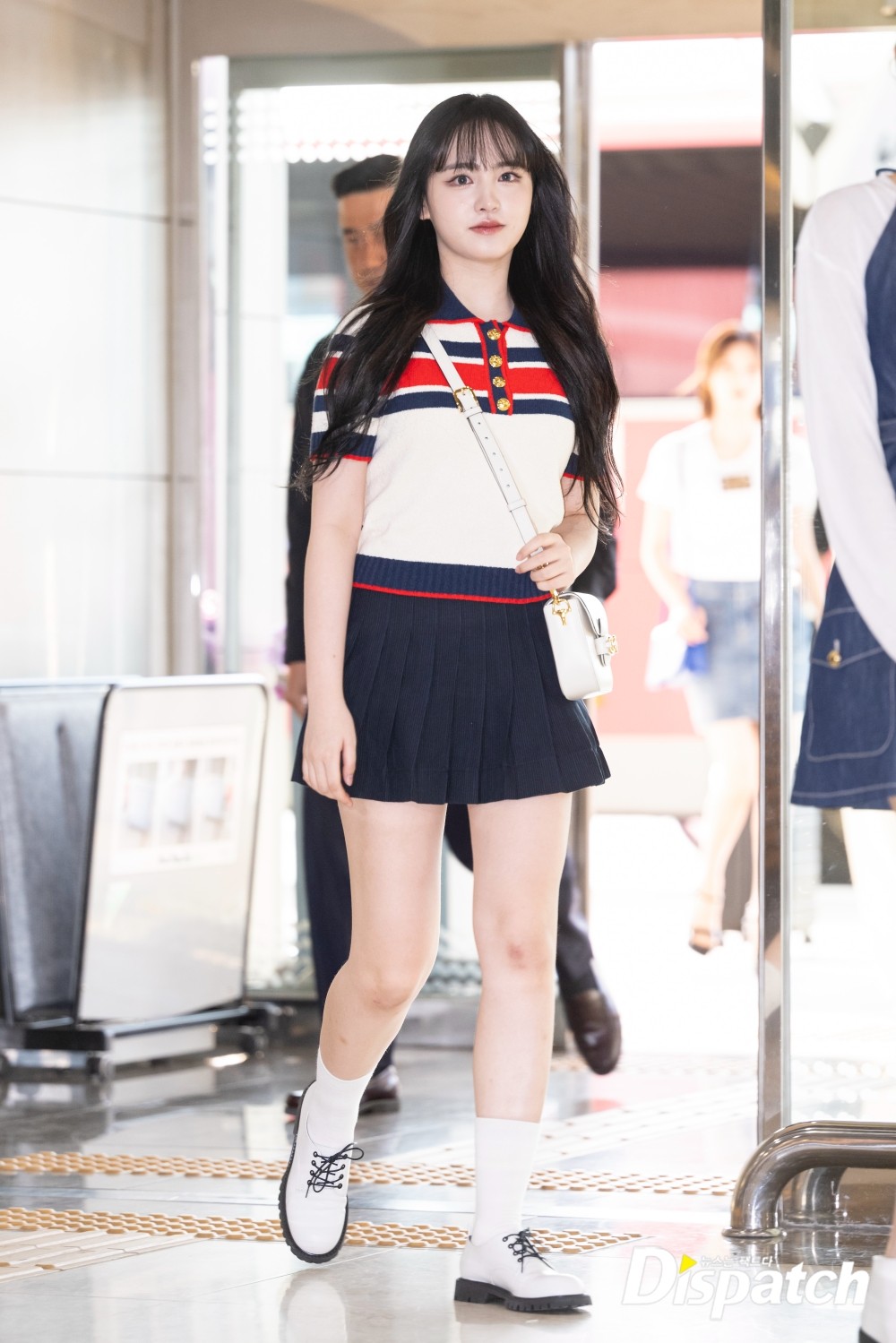 리즈는 반팔 니트탑과 플레어 스커트로 멋을 냈다. 청순한 미모가 돋보였다.