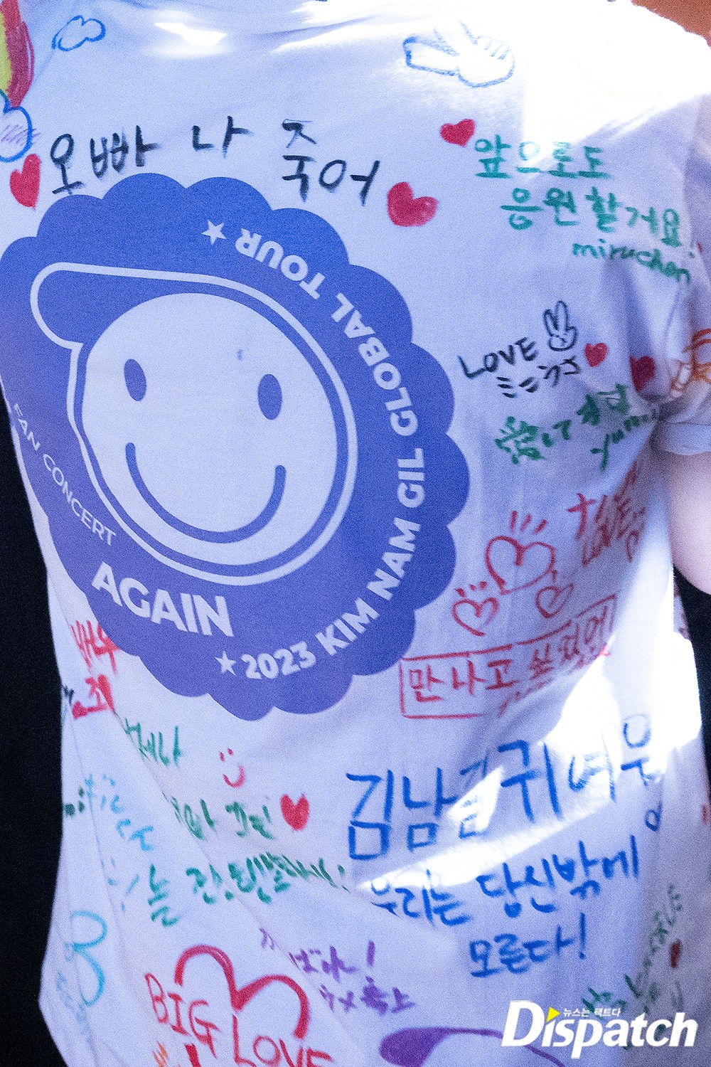 김남길은 이날 앵콜 무대에서 팬들의 메시지가 담긴 티셔츠를 입고 등장했다. 팬들은 서툰 한글로 진심을 눌러 적었다.