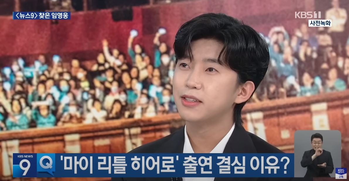 임영웅은 지난 2일 KBS-1TV ‘9시 뉴스’에 출연했다. 약 12분가량 진행된 인터뷰에서 자신의 삶, 음악, 영웅시대(팬덤) 이야기를 전했다.