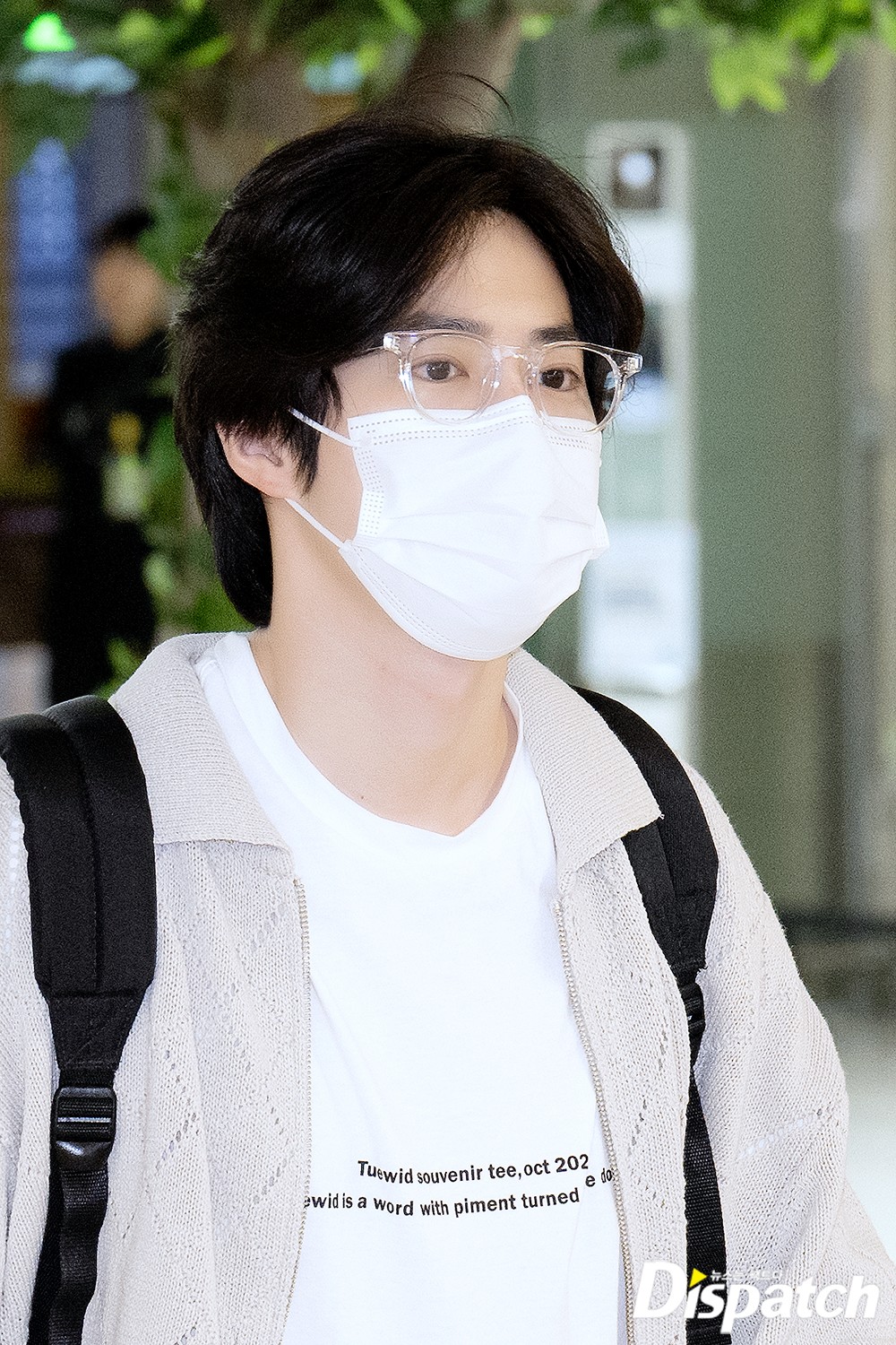 수호는 이날 청바지에 니트를 매치해 댄디한 공항패션을 연출했다. 시크한 분위기가 돋보였다.