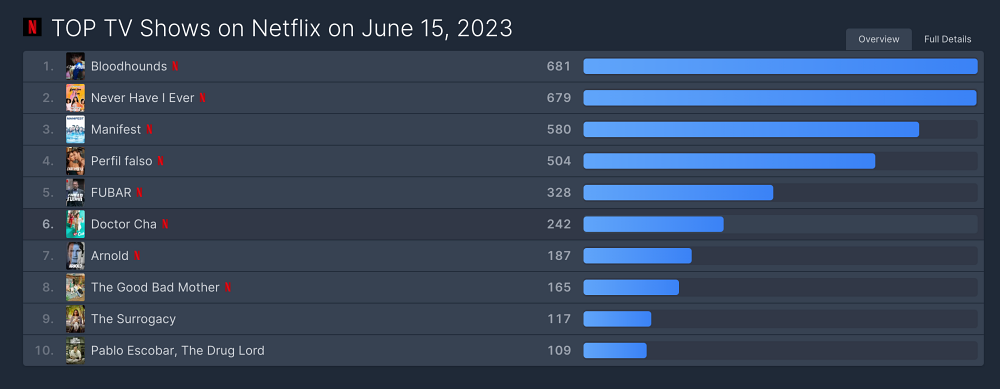 OTT 콘텐츠 순위 집계 사이트 ‘플릭스 패트롤’에 따르면, ‘사냥개들’은 16일 넷플릭스 TV쇼 부문 1위를 기록했다.