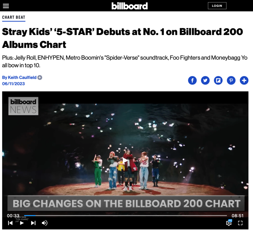 ‘빌보드 200’에서 3회 이상 1위를 기록한 것도 마찬가지. 지금까지 이 기록의 주인공은 방탄소년단과 스키즈가 유일하다.