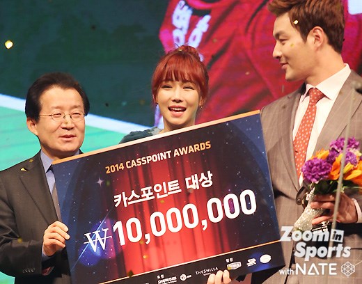 MBC 스포츠 플러스가 주최한 '2014 카스포인트 어워드'의 '대상' 시상자였다.