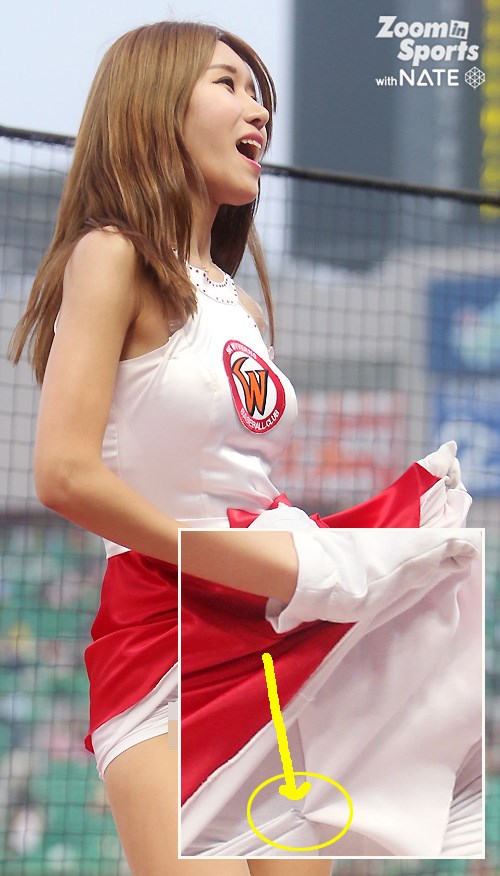 치마와 반바지 사이에 '옷핀을 꼽지 말고' 그냥 자연스럽게 복장을 갖추었으면 하는 바람이다. 인기몰이를 위해 치어리더의 치마와 반바지를 클로즈업한 건 진짜 아니라는 점을 강조하며..