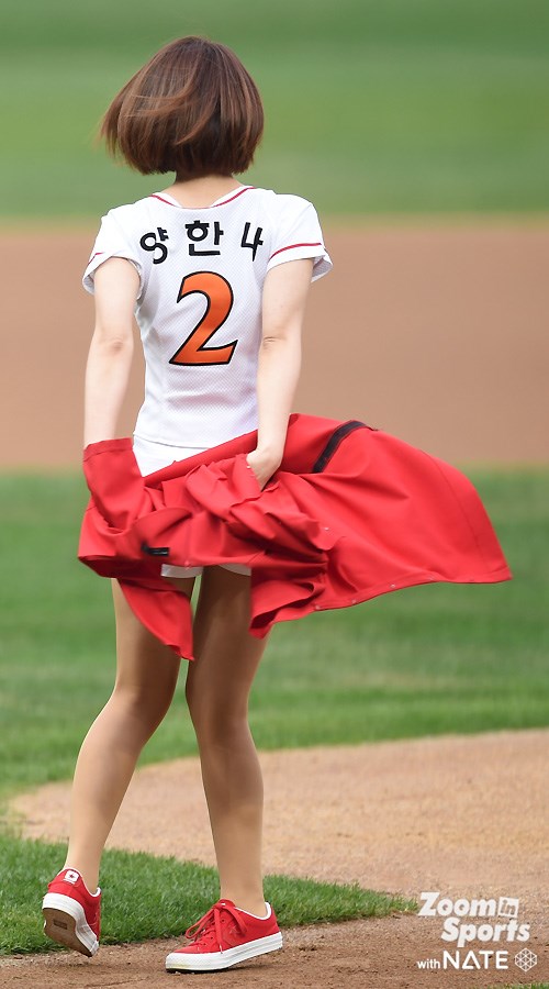 "포털 실검(실시간 검색) 2위에 오르는 '가슴벅찬' 시간이었다"며 기쁨을 감추지 못했다. 또한 그녀는 "그동안 꾸준히 운동을 하고 시구 자세를 열심히 배웠는데, 시구가 잘 되어 기분이 아주 좋다. 예쁘게 보였으면 좋겠다"며 소감을 전했다.