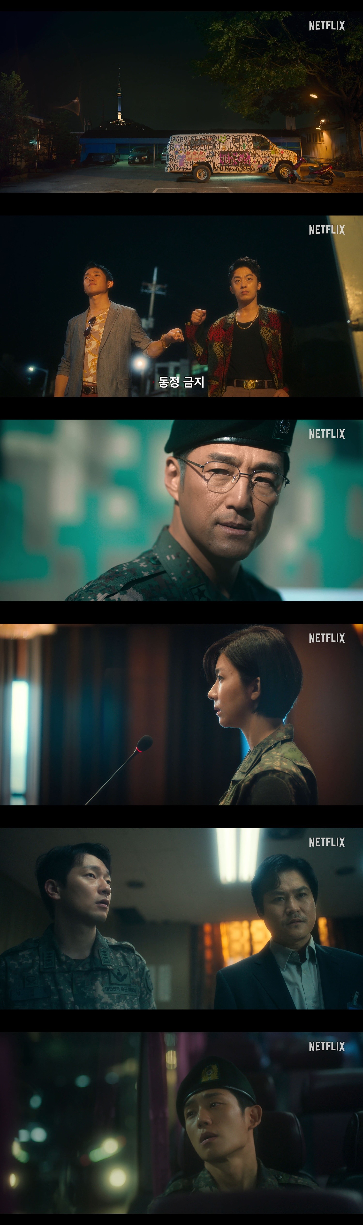 예고편은 준호와 호열로 시작한다. 두 사람은 탈영병을 '아무 일 없이' 데려오기 위해 고군분투한다. "놓치지 마라", "동정금지"라며 콤비 플레이를 펼쳤다.
