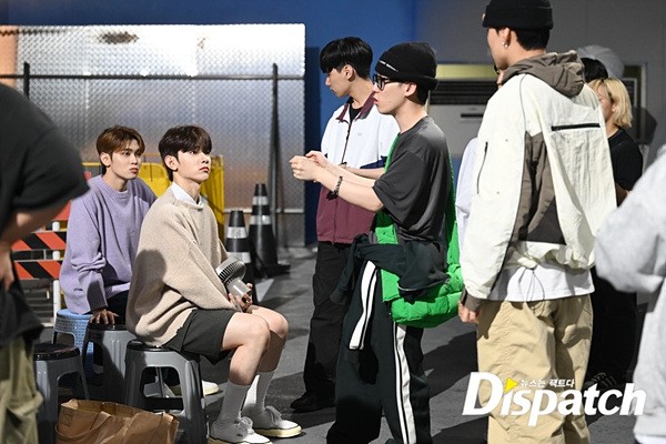감탄하셨나요? 아직 이릅니다. 이번엔 제로베이스원의 구슬땀을 확인하실 차례. 멤버들은 이날 '인 블룸'의 군무 한 신을 촬영하고 있었는데요.