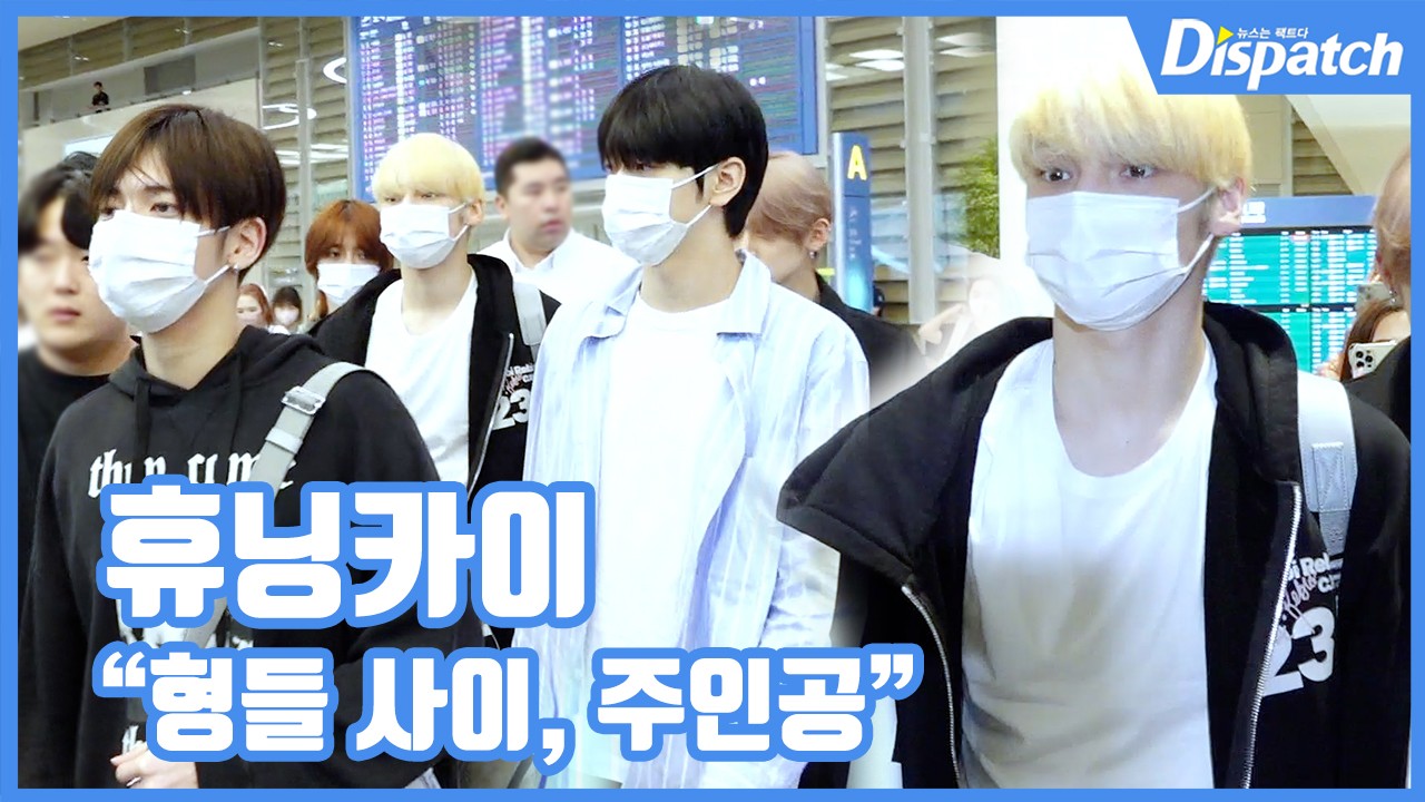 '투모로우바이투게더(TOMORROW X TOGETHER)' 휴닝카이가 형들에게 둘러싼 채 입국장을 벗어났다. 중앙에서 빛나는 생일자의 비주얼을 발산했다.