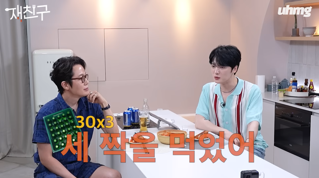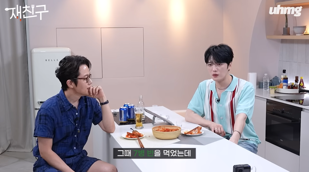 이날 두 사람은 김재중이 직접 만든 닭볶음탕을 먹으며 술을 마셨다. 정엽이 김재중에게 주량을 체크해 본 적이 있냐고 묻자, 김재중은 "혼자 먹을 때 해 본 적 있다. 아무리 생각해도 옛날보단 많이 줄었다"라고 당시를 떠올렸다.