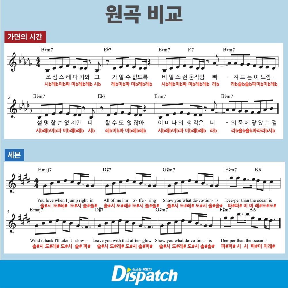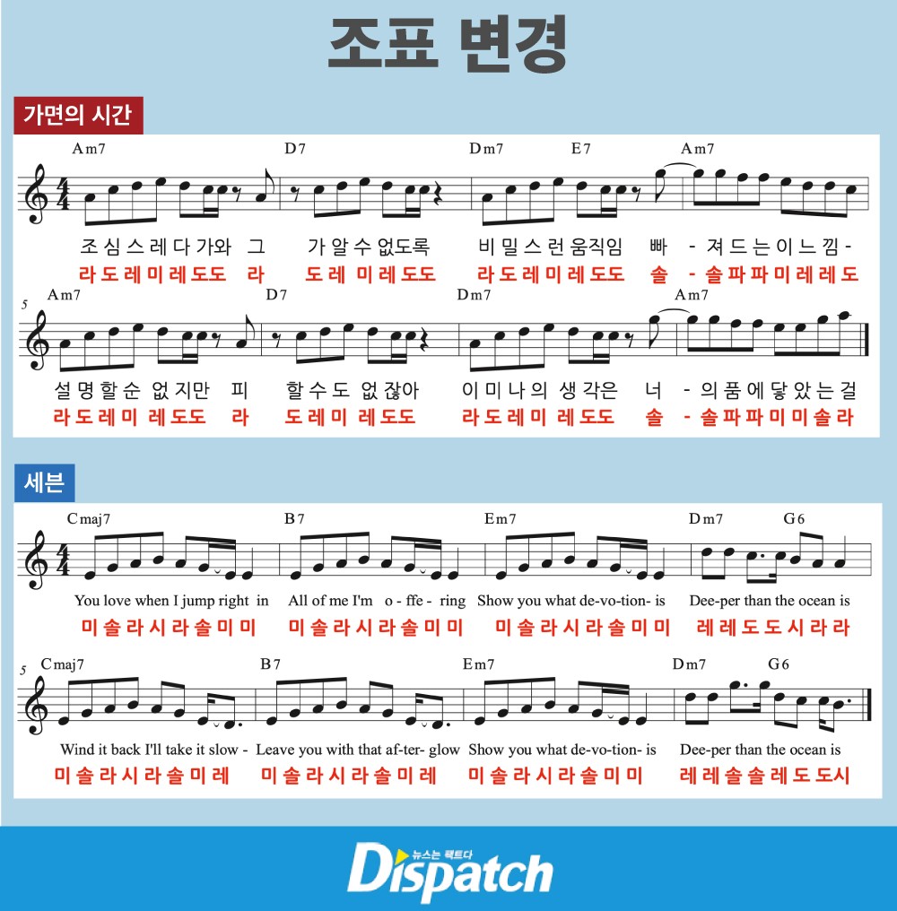 과연 그럴까? '디스패치'가 해당 파트를 오선지에 옮겼다. 듣는 것, 아니 보는 것이 믿는 것. 눈으로 보고 귀로 확인하자.