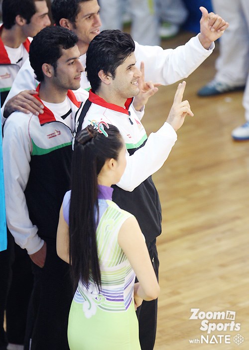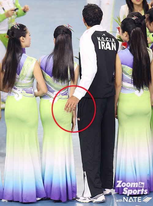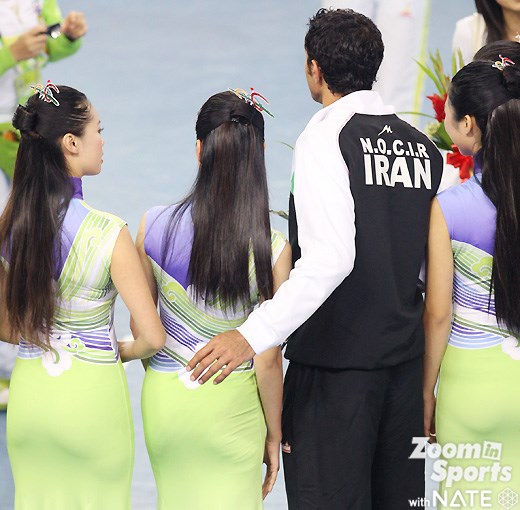 이란 선수의 손이 리위의 몸에 닿지는 않았다. 휴우~, 천만다행이었다.