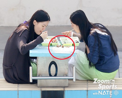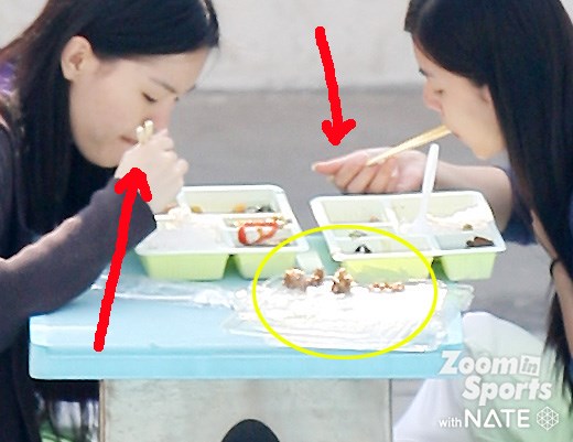 젓가락질이 서툰'척', 아울러 마음에 들지 않는 반찬(오란색 원)은 따로 골라내고 먹는지..