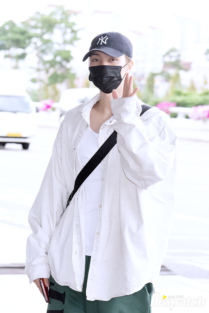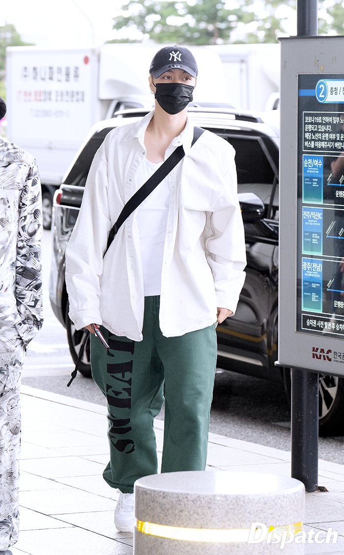 쟈니는 이날 트레이닝 팬츠에 셔츠를 매치해 수수한 공항패션을 연출했다. 우월한 비율이 돋보였다.
