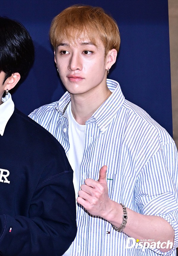 방찬은 눈부신 금발헤어와 조각같은 비주얼로 시선을 모았다. 스윗한 미소와 친절한 손인사로 팬들에게 화답했다.