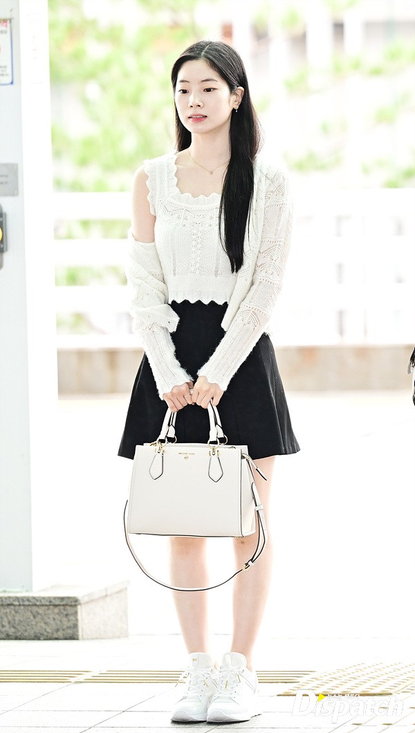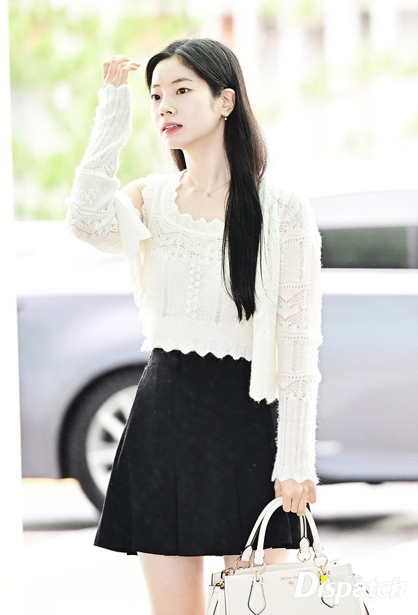 다현은 블랙 앤 화이트 컬러로 세련된 공항패션을 연출했다. 아침에도 눈부신 청순미가 시선을 사로 잡았다.