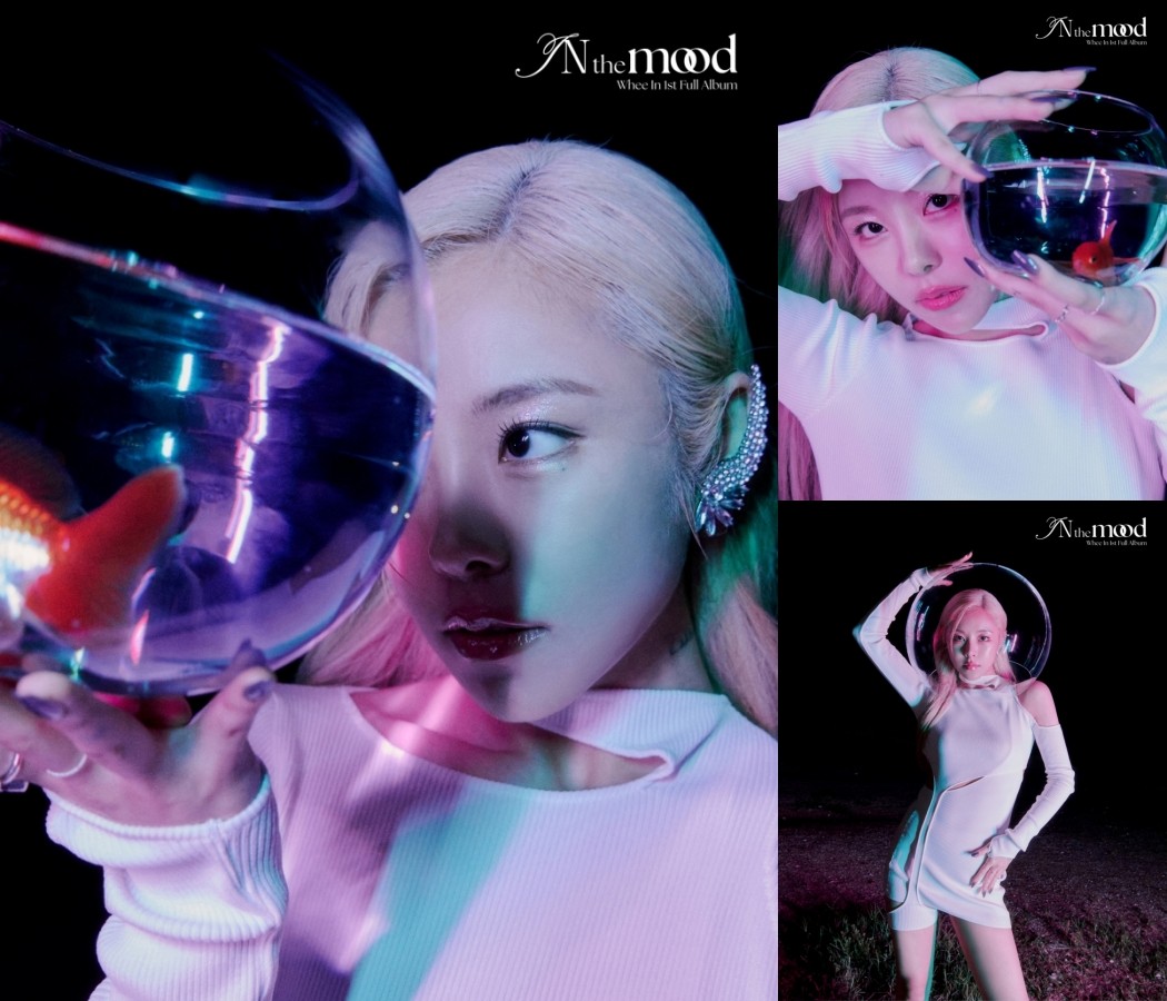 콘셉트 포토는 몽환미를 드러냈다. 휘인은 금붕어가 헤엄치는 작은 유리 어항을 빤히 쳐다봤다. 걸크러시, 섹시 카리스마와는 다른 신비로운 느낌을 완성했다.