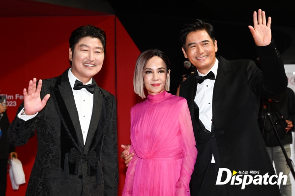 영화 '거미집'의 임수정, 오정세, 정수정 등이 BIFF를 방문했다. '독전2'의 조진웅, 차승원, 한효주는 올 블랙룩으로 맞춰 입고 등장했다.