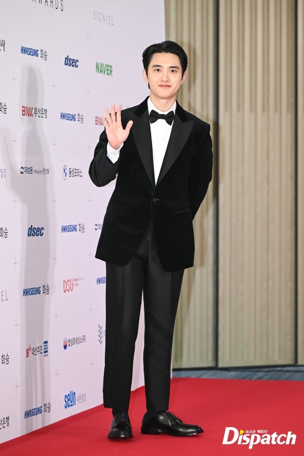 'EXO' 멤버 겸 배우 도경수는 블랙 턱시도로 멋을 냈다. 잘생긴 비주얼이 돋보였다.