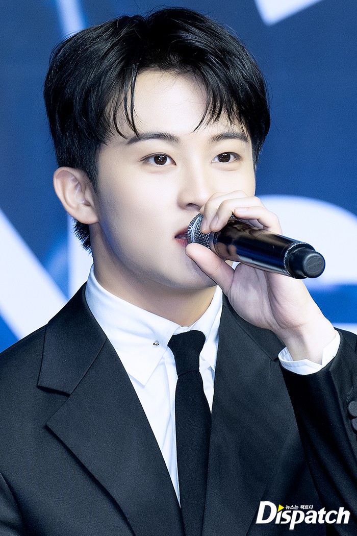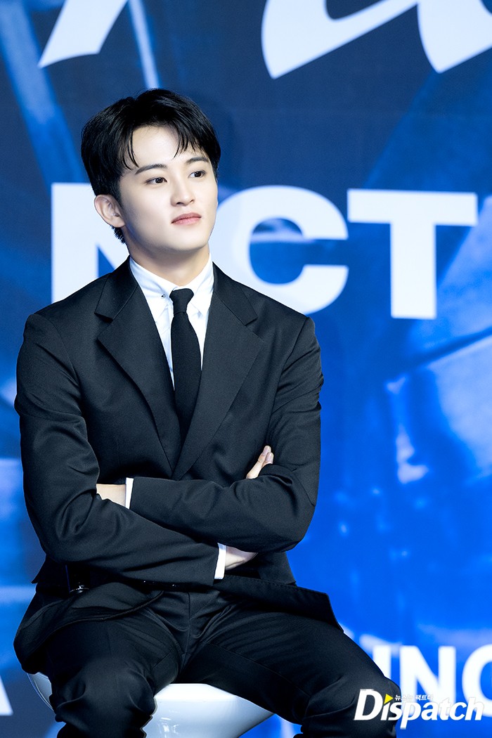 마크는 이날 블랙 수트로 댄디한 매력을 뽐냈다. 훈훈한 비주얼도 돋보였다.