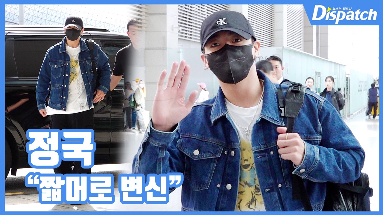 이날 정국은 캡 모자, 청재킷과 카고 팬츠를 매치해 캐주얼하면서도 댄디한 공항패션을 선보였다. 모자와 마스크 사이로 보이는 훈훈한 눈빛이 인상적이었다.