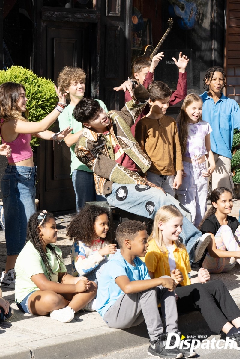 이날 세븐틴은 세계 각국의 키즈들과 촬영을 진행했습니다. 음악으로 남녀노소 하나 된 모습을 표현했는데요. 아이들과 댄스 배틀(?)도 펼쳤습니다.