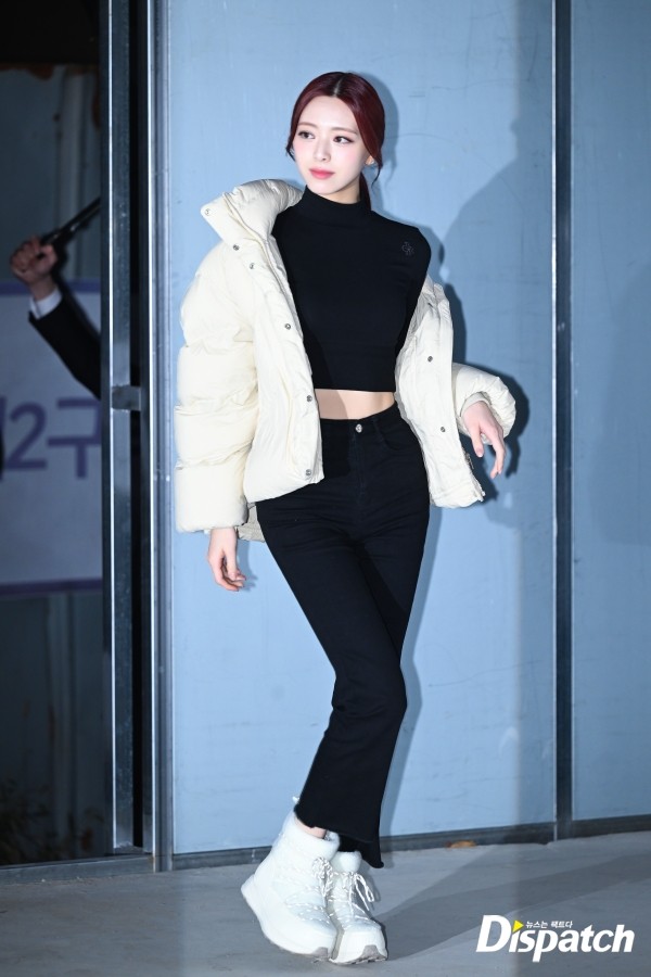 'ITZY' 유나는 블랙 크롭탑에 패딩 점퍼로 멋을 냈다. 볼륨미 넘치는 몸매가 돋보였다.