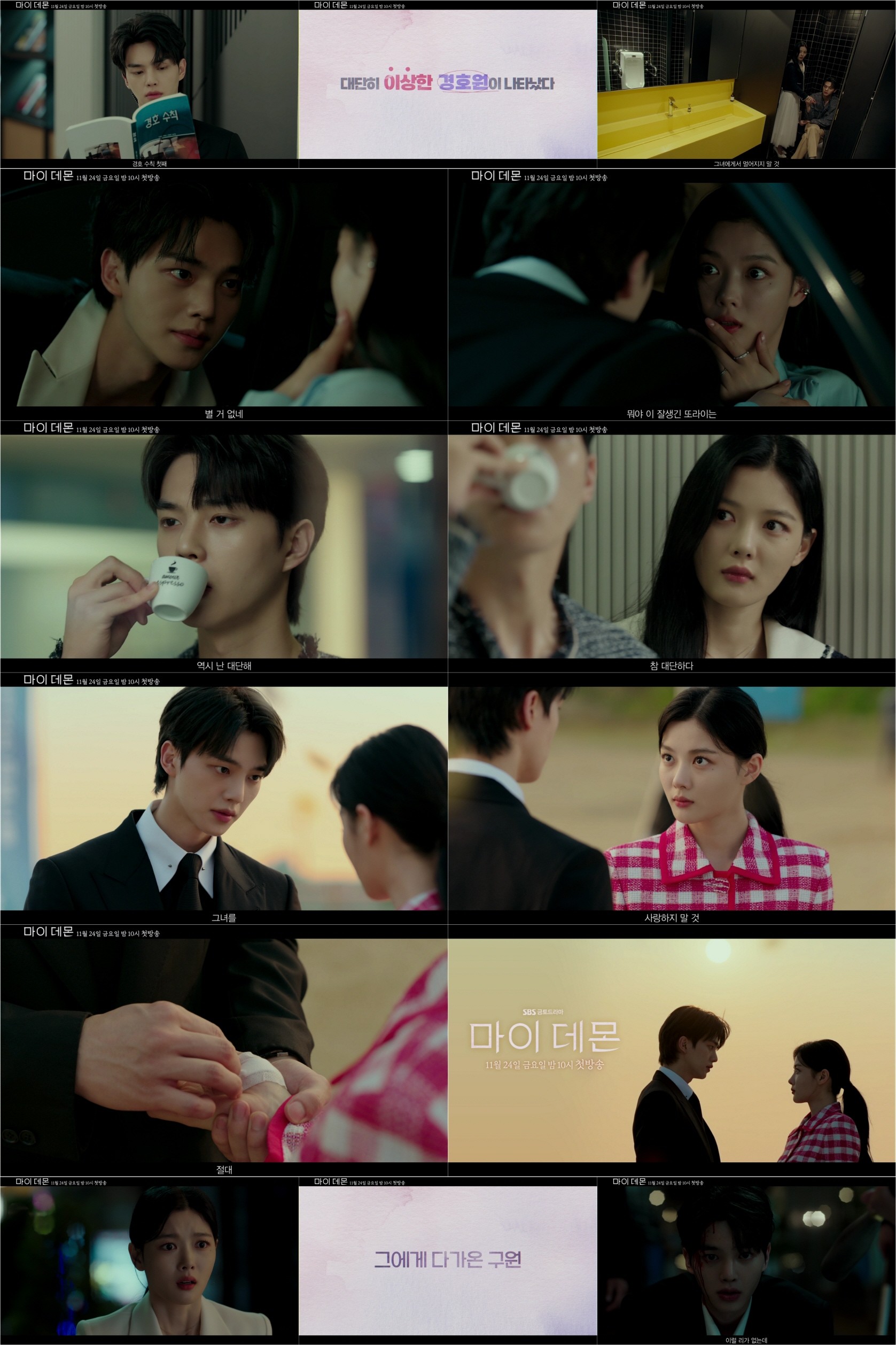 SBS-TV 측은 3일 새 금토드라마 '마이 데몬'(극본 최아일, 연출 김장한)의 2차 티저 영상을 공개했다. 구원(송강 분)과 도도희(김유정 분)의 유쾌한 케미스트리를 담았다.
