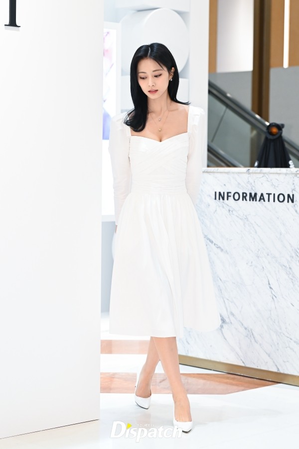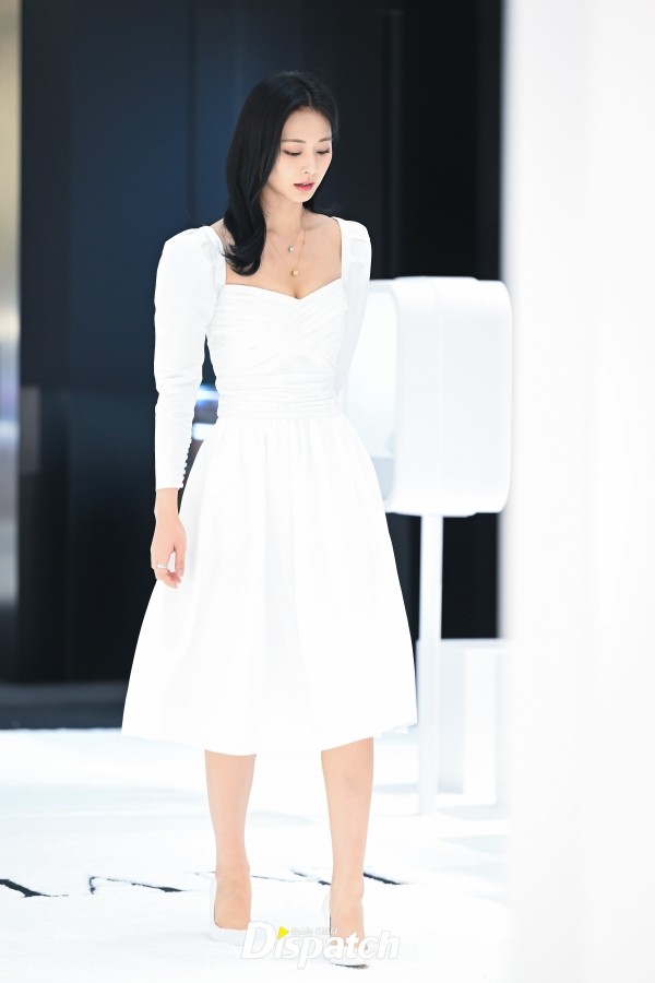 쯔위는 화이트 원피스로 아름다움을 뽐냈다. 청순미가 돋보였다.