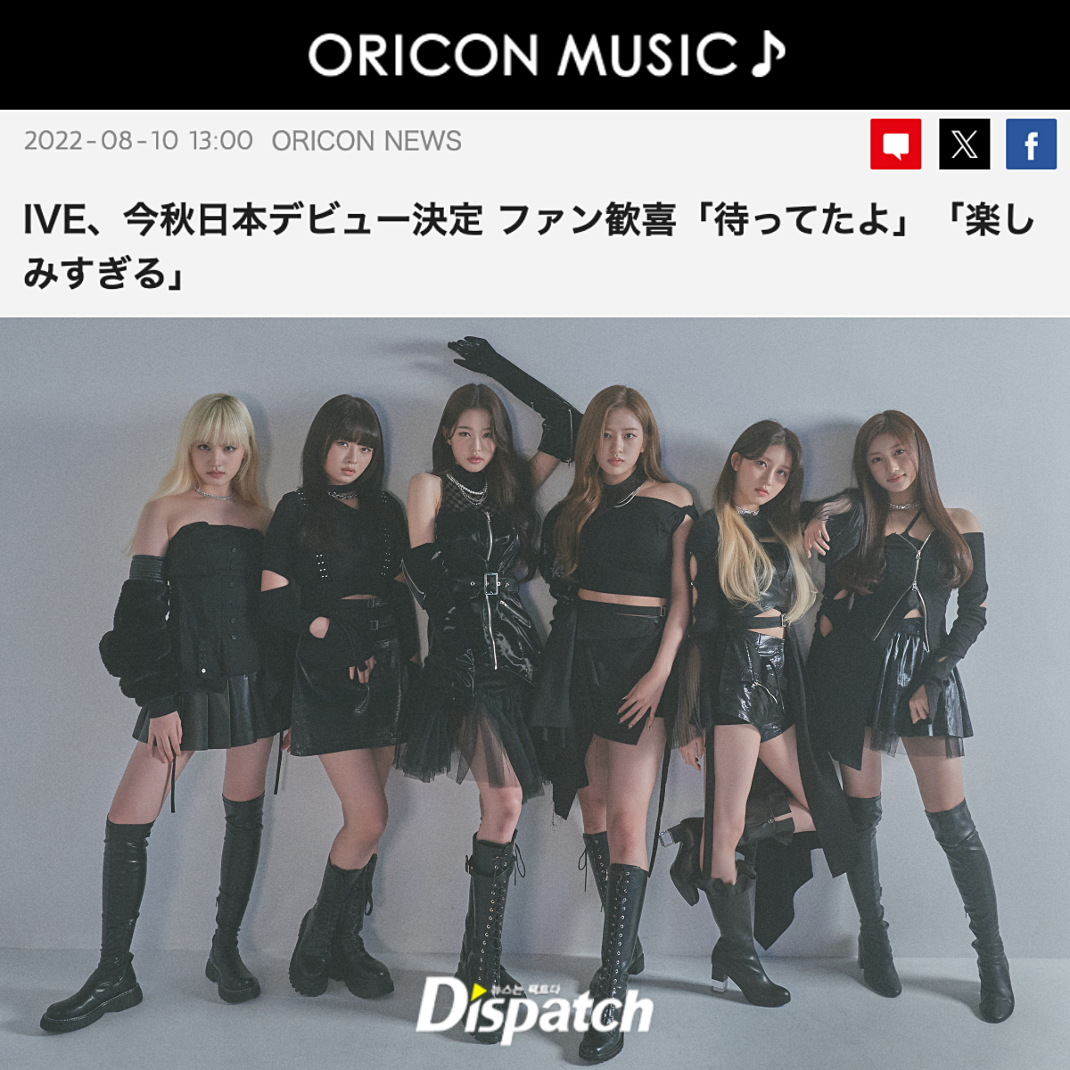 "아이브 일본 데뷔 결정, 팬들은 환희"(IVE、日本デビュ-決定 ファンかんき, 오리콘, 2022년 8월)