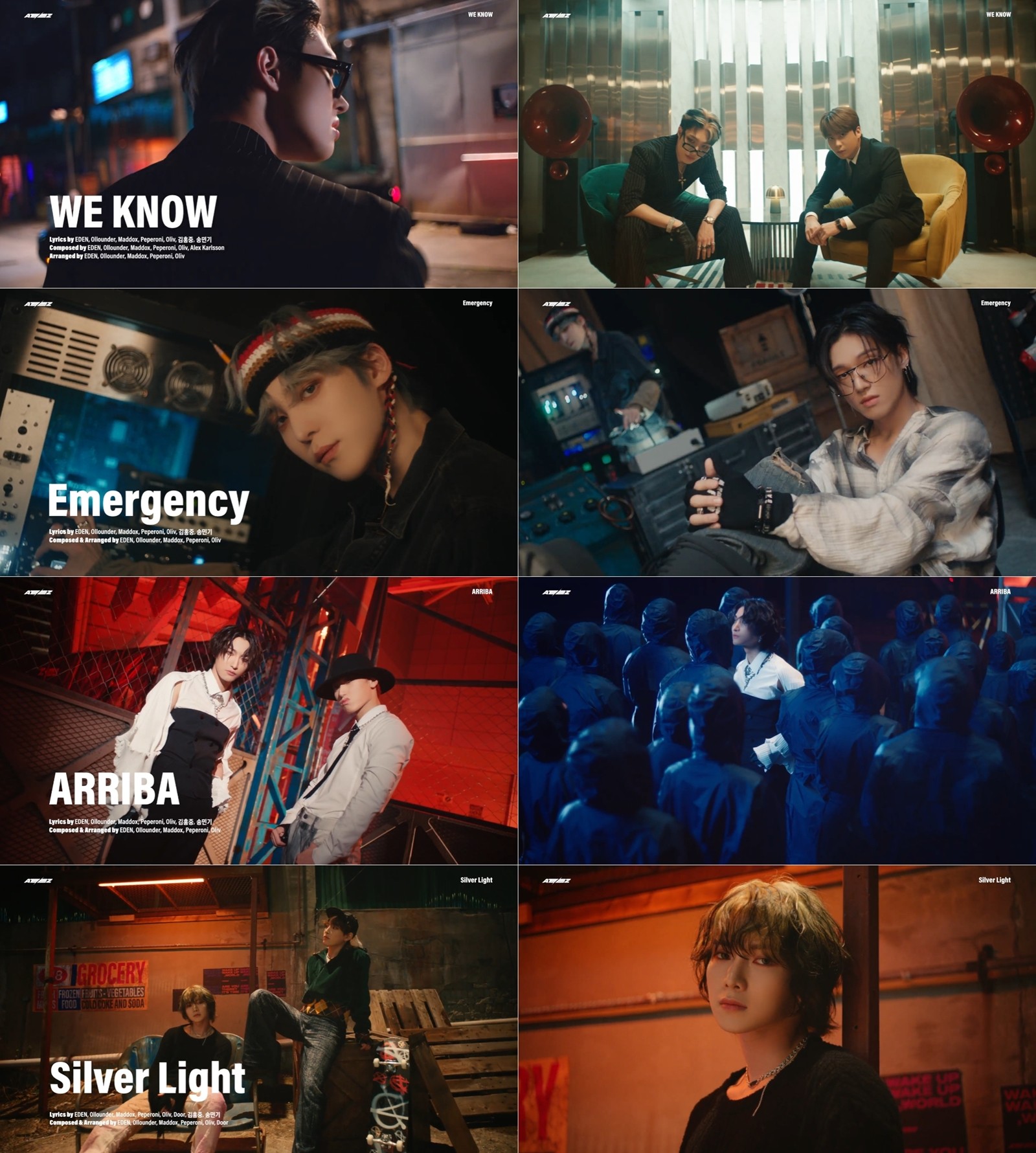 총 4곡의 음원 일부가 베일을 벗었다. '위 노우'(WE KNOW), '이머전시'(Emergency), '아리바'(ARRIBA), '실버 라이트'(Silver Light) 등이다. 아직 공개되지 않은 곡도 있다.