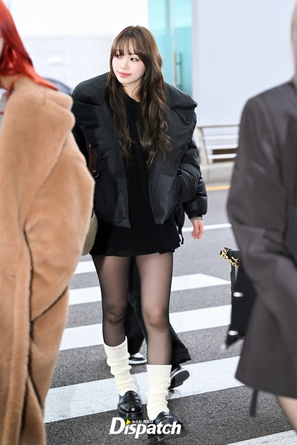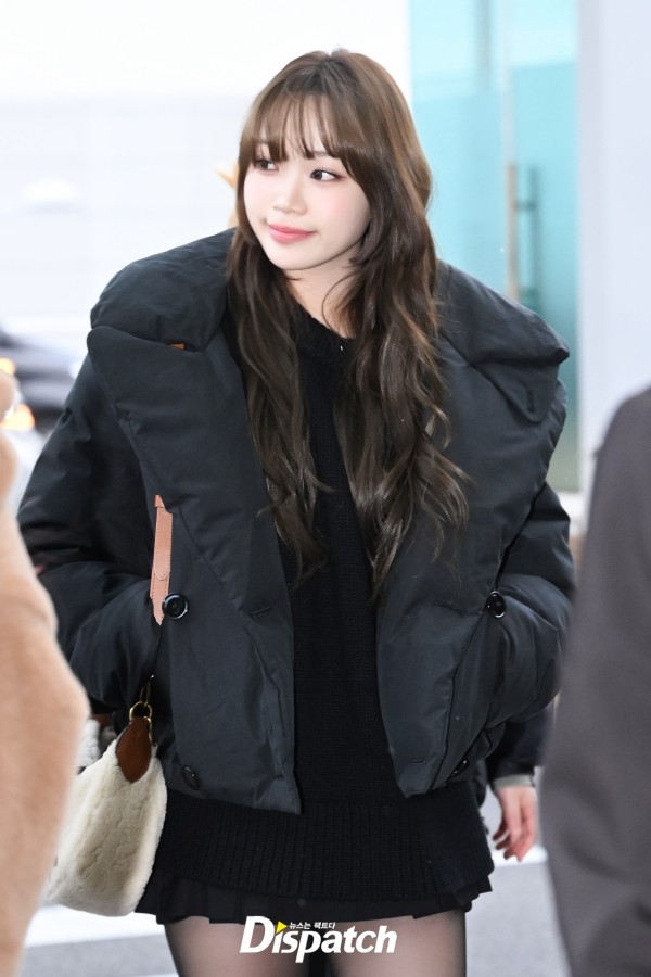 김채원은 블랙 패딩 점퍼와 미니 스커트로 멋을 냈다. 상큼한 미소가 돋보였다.