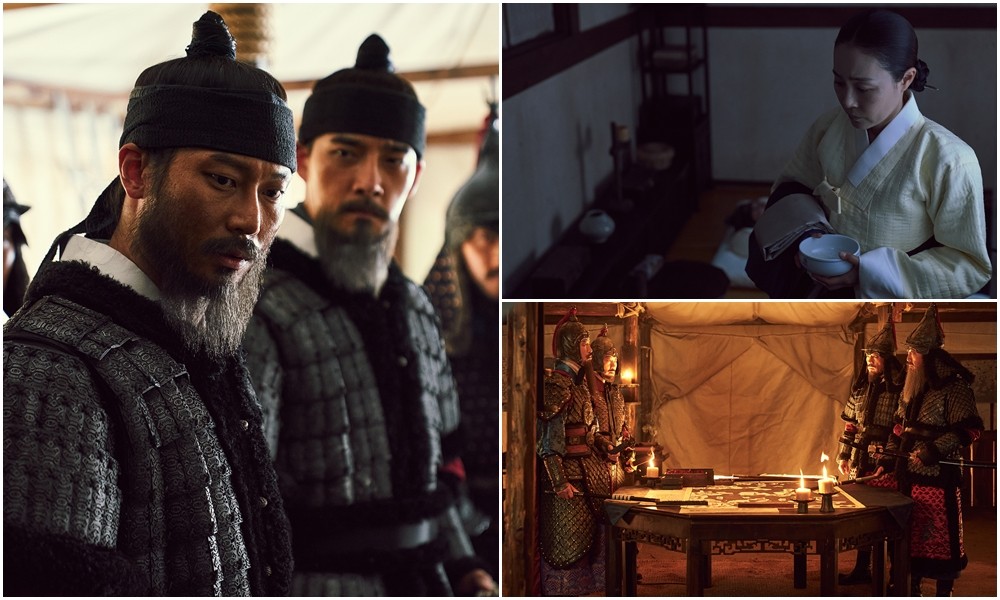 팽팽한 이야기를 엿볼 수 있었다. 조선군은 이순신(김윤석 분)을 중심으로 왜군을 완벽하게 섬멸하고자 머리를 맞댄 모습. 절체절명 위기에 놓인 왜군과 명군도 그렸다.
