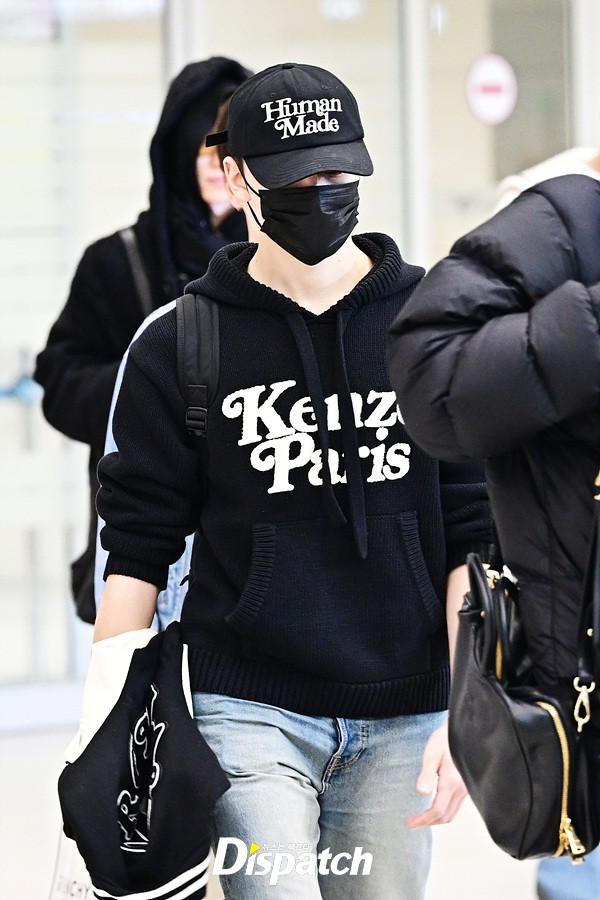 버논은 후드와 데님진으로 캐주얼한 공항패션을 연출했다. 장시간 비행에 고개를 숙이고 서둘러 입국장을 나섰다.