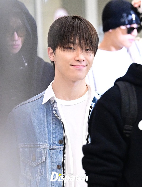 디노는 청재킷과 화이트 티셔츠로 캐주얼한 공항패션을 연출했다. 스윗한 미소와 훈훈한 비주얼이 돋보였다.