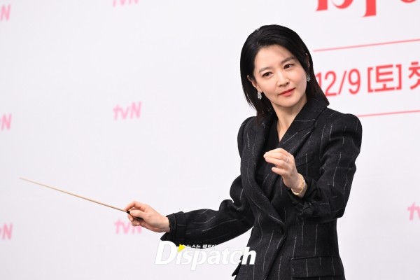 이영애는 스트라이프 롱코트로 멋을 냈다. 지휘봉 퍼포먼스도 펼쳤다.